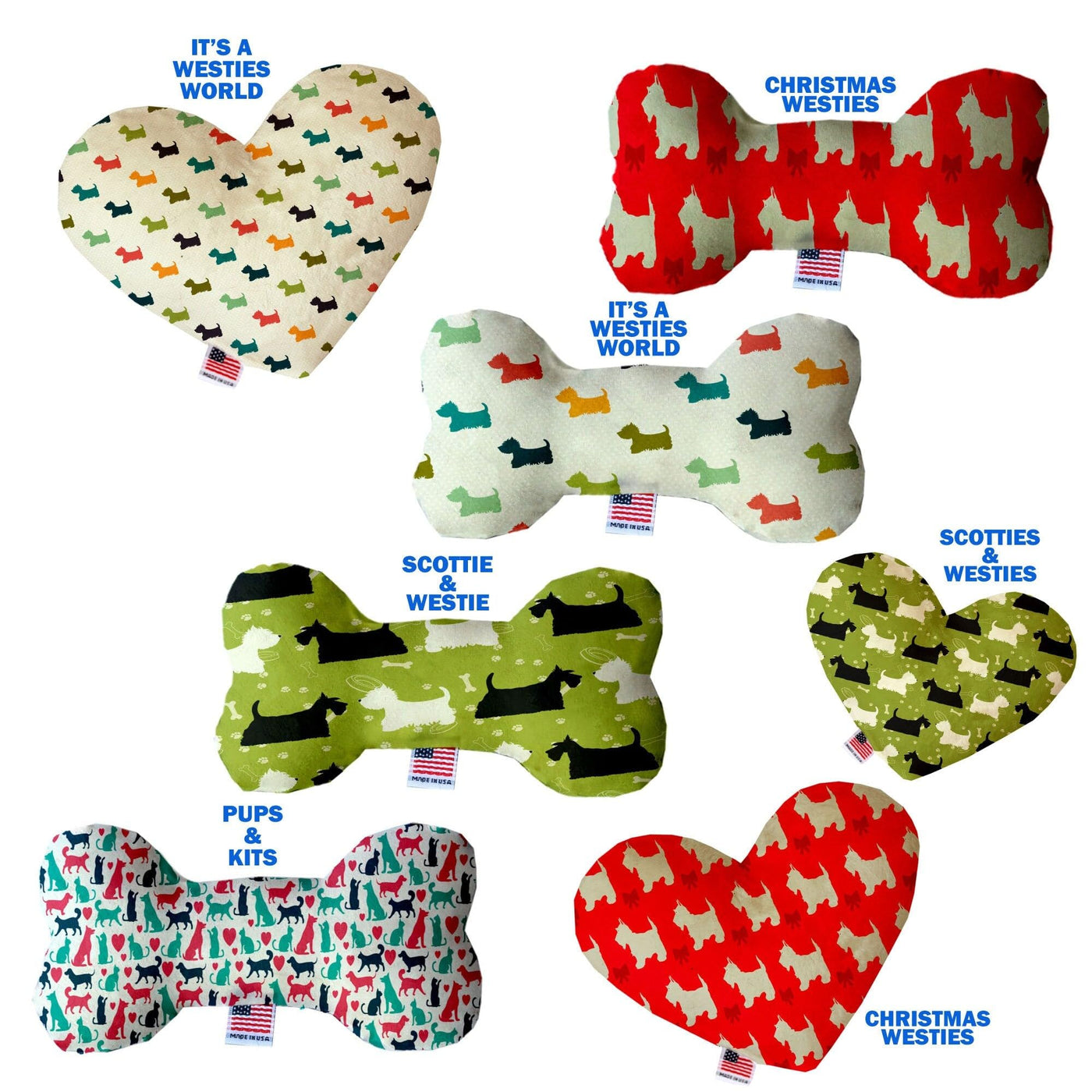 Pet & Dog Plush Heart or Bone Toy, "Westie World Group" (Available in different sizes, and 4 different pattern options!)