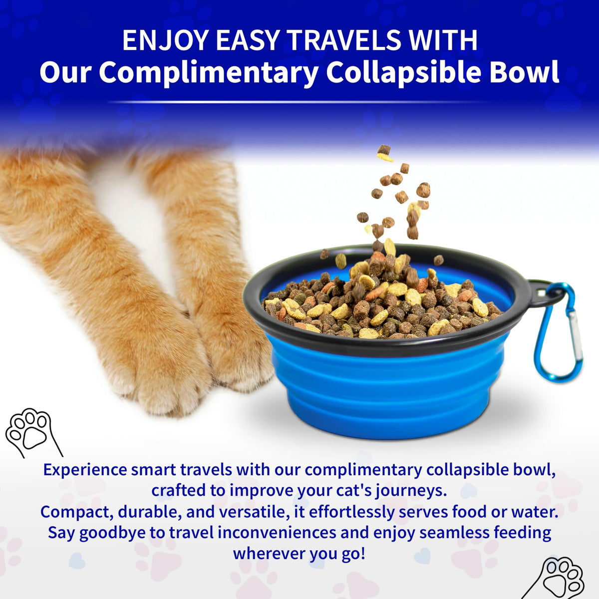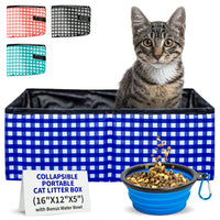 Q: Does the litter box come with any additional features?A: Yes, it includes a bonus collapsible water/food dish, making it a great addition to your pet travel supplies and ensuring your cat stays comfortable and hydrated during trips.