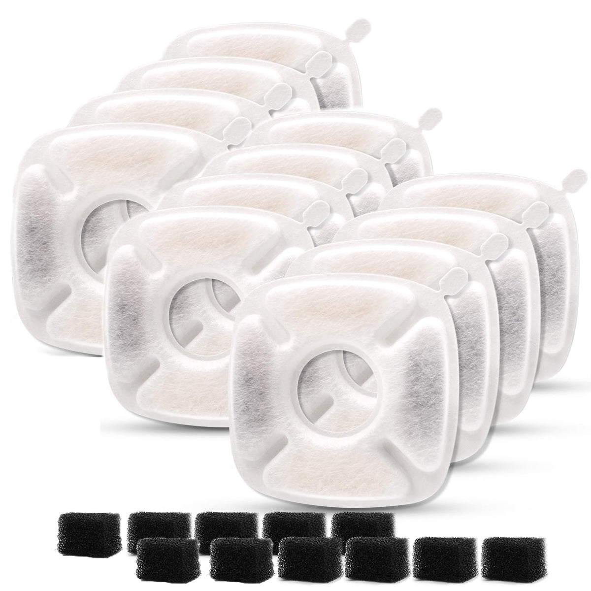 Pet Fountain Filters Replacement Compatible With 95Oz/2.8L Dog Water Fountain, Cat Water (12 Carbon Filters+12 Sponge Filters)