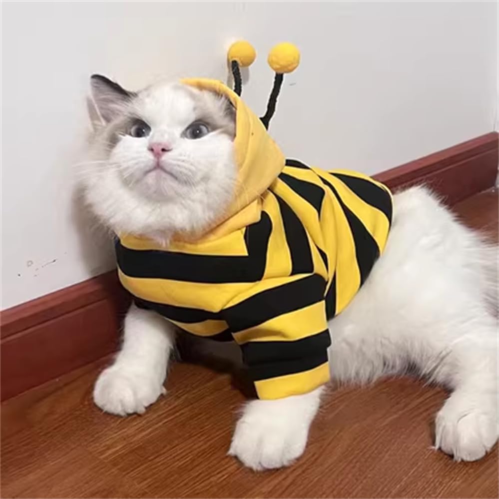 Funny Design - Yellow Bee Green Frog Green Dinosaur So cute hoodie costume for pets. The dog clothes with bee frog dino shape design on the head let your dog/cats look more funny and cute.