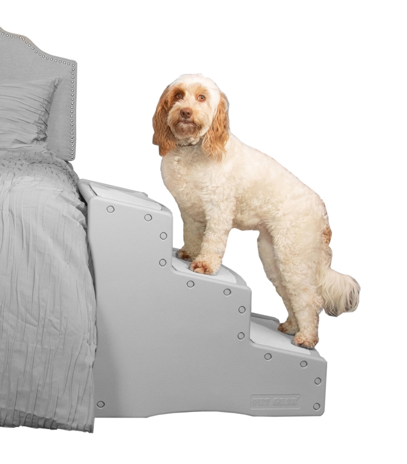 The Easy Step Iii Extra Wide Pet Stair Has Wide, Deep Steps To Give Larger Dogs The Ability To Get Their Entire Body On Each Platform And Comfortably Climb The Stairs. The Innovative Incline Of Each Step Reduces The Amount Of Stairs Needed To Climb Eliminating Stress On Your Pet. The Carpet Tread Removes Easily And Is Machine Washable. The Stair Easily Snaps Together (No Tools Required).