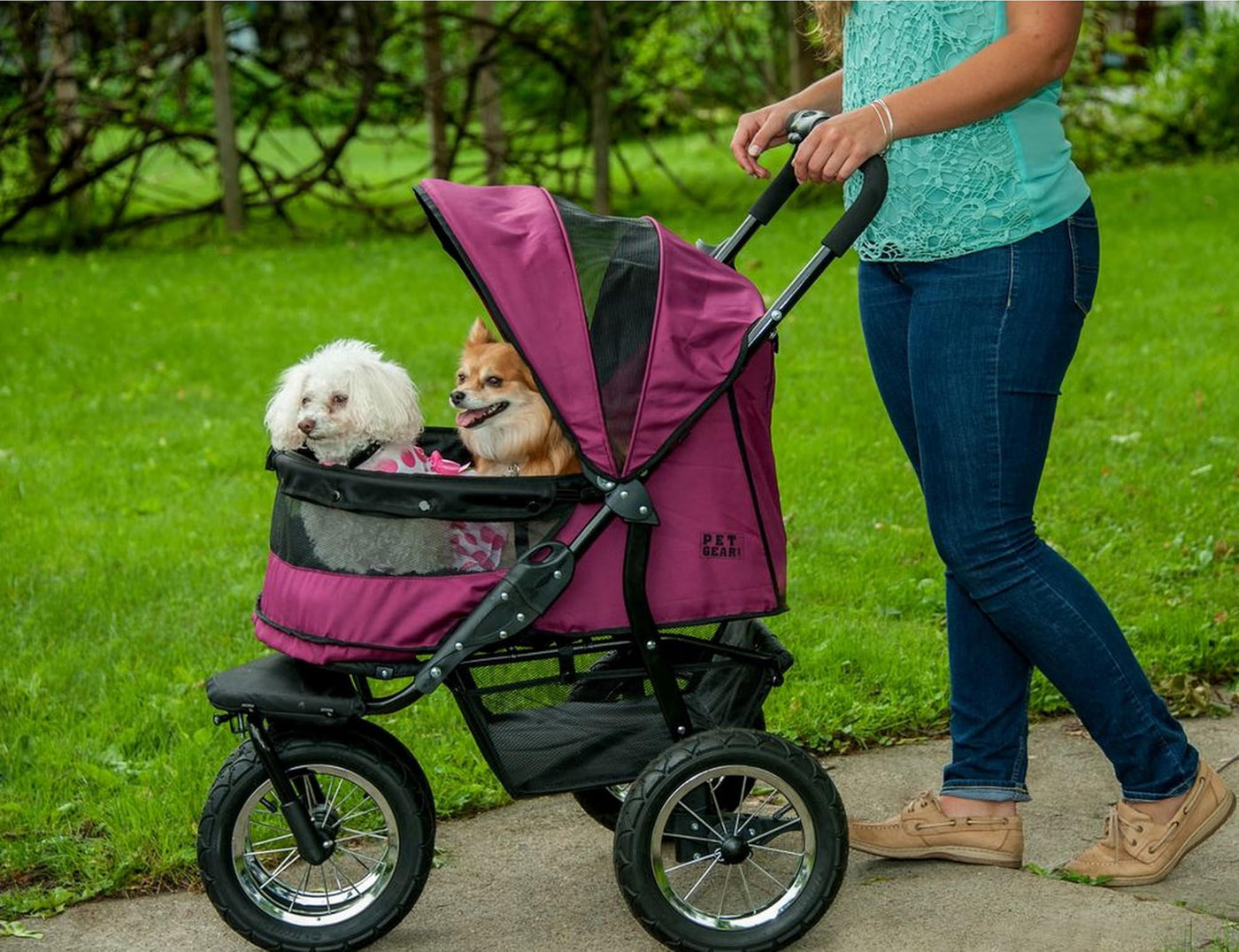 Pet Gears No-Zip Double Pet Stroller Is Truly One Of A Kind. The Extra-Wide Carriage Design Offers A Spacious, Comfortable Ride For Both Single And Multiple Pets. No Zippers Means No Hassle When Trying To Open And Close The Stroller. Our Push Button No-Zip Technology Means That You Can Easily Gain Access To Your Pet Without Fumbling With Difficult Zippers! Quick-Release Tires Ensure The Smoothest Ride Possible. Weve Also Included A Plush Bolster Pad And Weather Cover To Create An Extra-Comfy Environment For Your Pet, Even In Bad Weather. The No-Zip Double Pet Stroller Also Features An Elevated Paw Rest. Your Pet Can Easily Look Out Of The Stroller By Using The Front Bar For Support. The New Panoramic View Window Allows Your Pet To Remain Safe Inside Of The Stroller Without Missing Any Sights While You Stroll!
