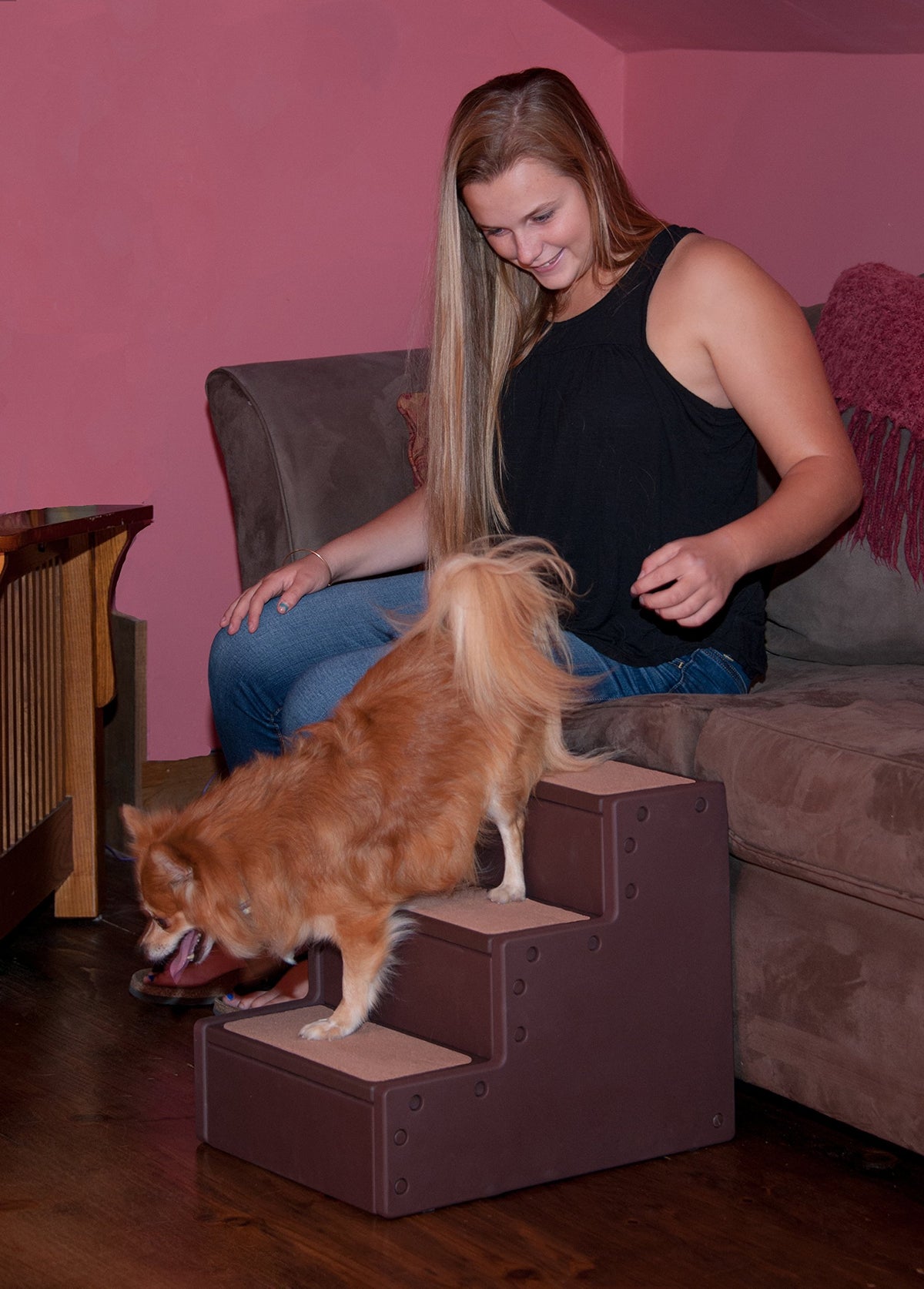 Pet Step 3 Allows Your Dog The Ability To Get Up To The Couch Or Bed With Ease. The Pet Step 3 Has Rubber Grippers On The Bottom This Keeps The Step Secure And In Place While The Pet Is Using The Step. Assembly Is Easy Just Snap Together No Tools Required!