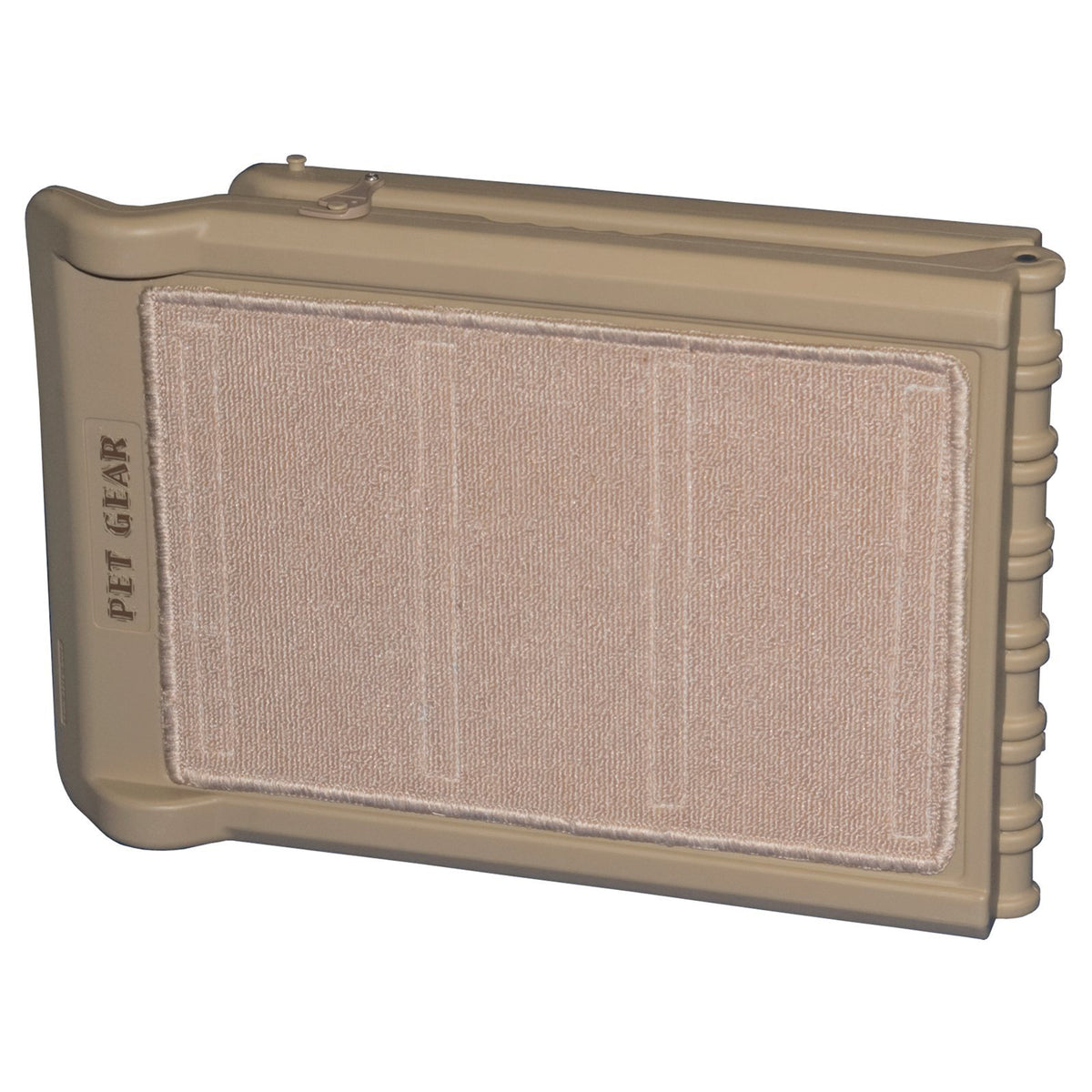 The Pet Gear Travel Lite Bi-fold Pet Ramp allows your pet easy access into your vehicle or other hard to reach places. The removable supertraX tread is machine washable. The bottom of the ramp has rubber grippers to maintain its position. This lightweight ramp folds in half and has a carry handle for easy transport and storage.