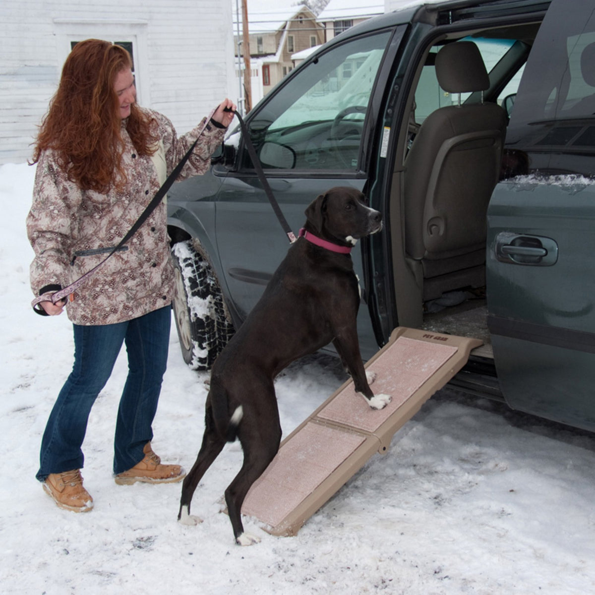 Q: Can I use this ramp with my SUV or van?A: Absolutely! The Pet Gear Travel Lite Bi-Fold Ramp is designed for use with SUVs and vans, providing your pets with easy access to elevated areas.