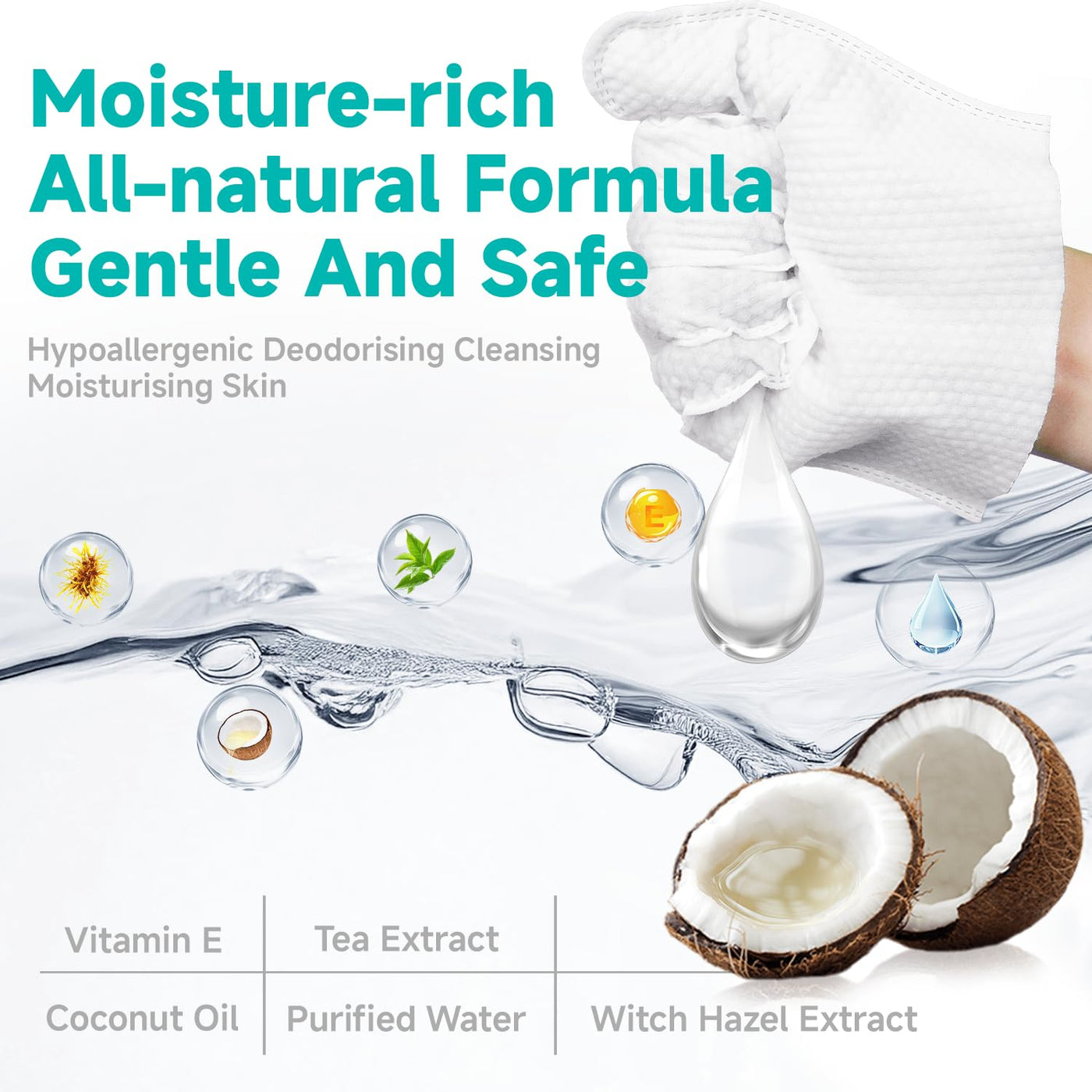 Pet Glove Wipes For Dogs And Cats [Individually Wrapped][Hypoallergenic Cleaning & Deodorising] Glove Bathing Wipes Moisture-Ric