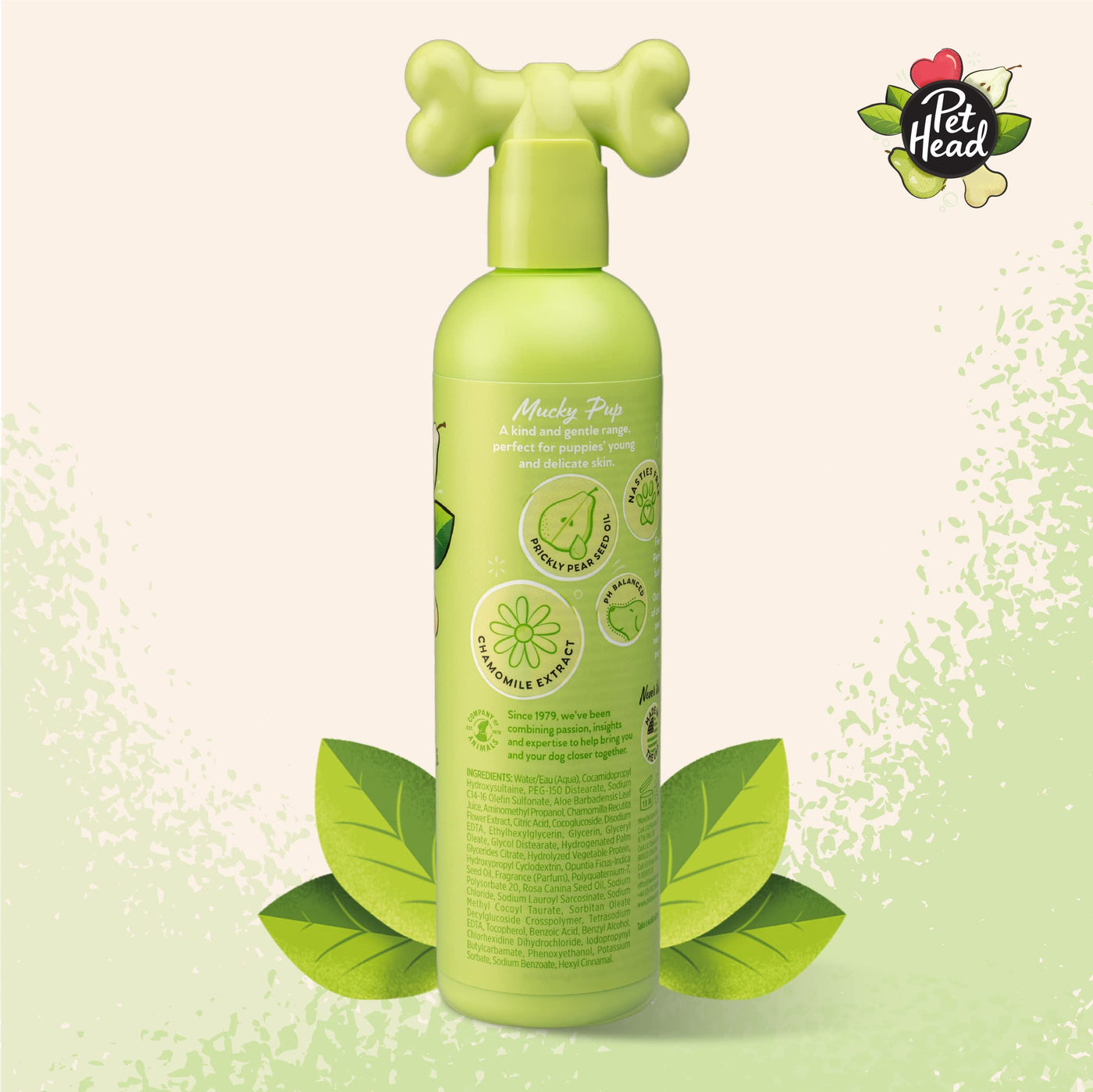 Pet Head Mucky Pup Shampoo for Puppies is a gentle formula designed for puppy's delicate skin and coat. Packed with natural oils this nourishing shampoo will leave your pup's skin even more huggably soft. Pet Head is made with human quality ingredients and unique amazing scents - one of the key features that differentiates Pet Head from other brands. Made in USA.Vegan cruelty-free pH balancedIdeal for puppie's young and delicate skinContains no parabens surfactants or dyesPrickly Pear fragrance - sweet fruity with a slight tropical nuance