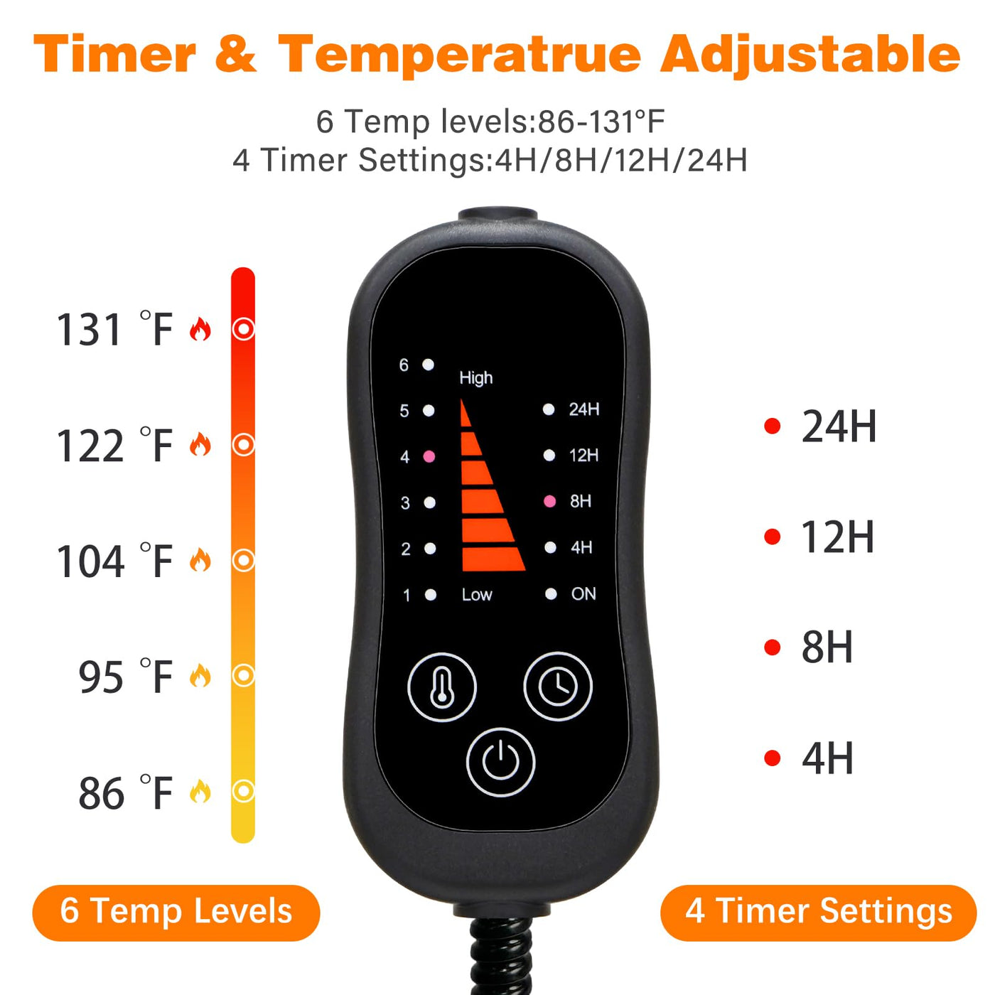 Pet Heating Pad, Adjustable Temperature Heated Dog Bed With Timer, Outdoor Waterproof Heated Pad With Anti-Chew Cord, Overheat P