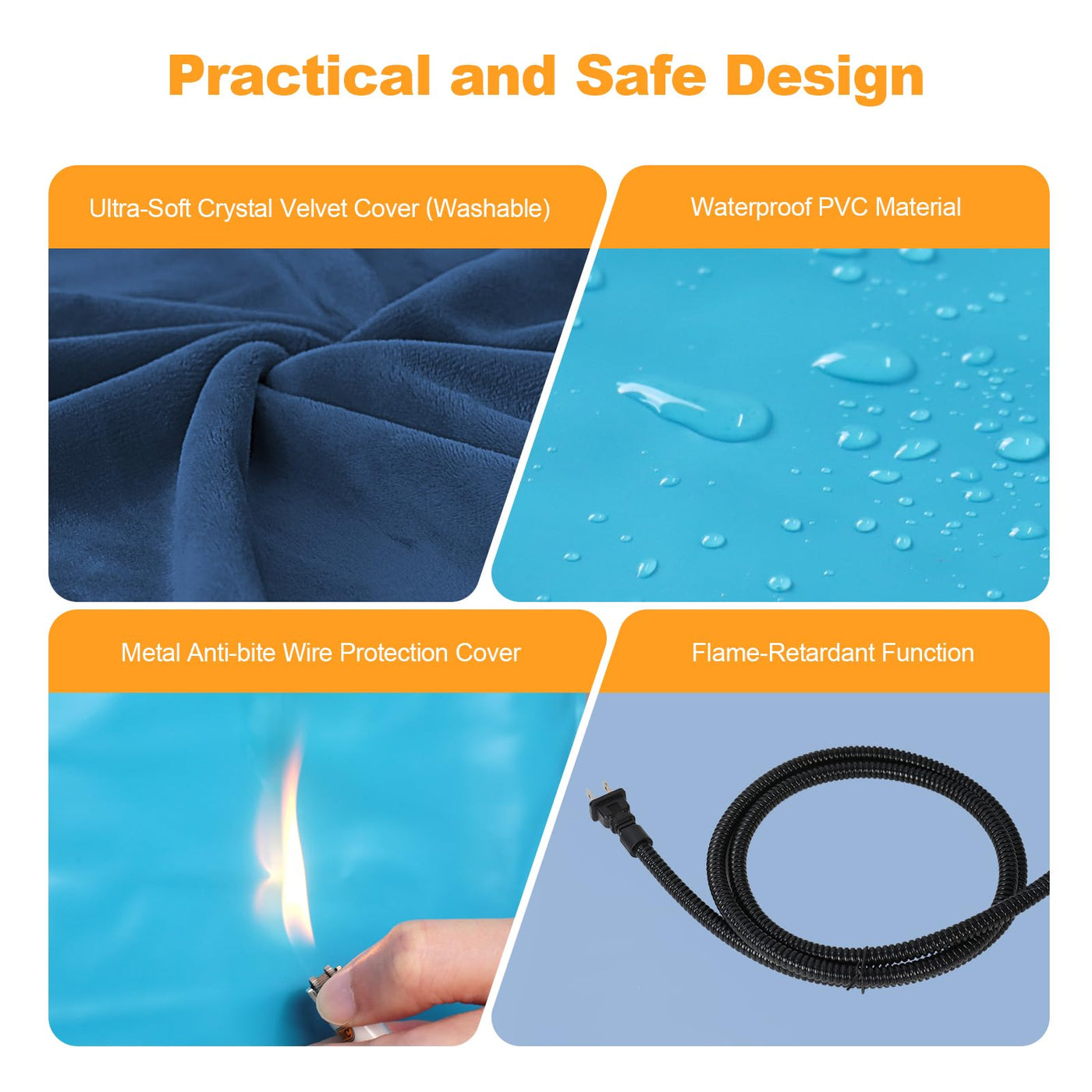 Pet Heating Pad For Dog Cat, 100% Waterproof Outdoor Cat Heating Pad, Multi-Sizes Outside Electric Heated Dog Bed Mat Blanket Pu