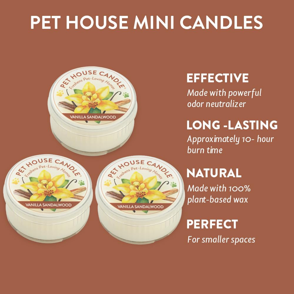 Pet House Candles To Keep Your Home Smelling Fresh - Pet Friendly Candles For An Odor-Free Hometired Of Pet Smells Taking Over Your Space? This Candle Set Of 3 From One Fur All Pet House Candles Is Made Just For Homes Like Yours. These Light, Refreshing Candles Are Ideal For Any Small Room In Your Home. A Little Larger Than A Scented Tea Light, These Small Candles Are Great For The Bathroom, Litter Box Room, Or Your Pets Favorite Hangout Spot.Each Pet Candle Is Made With Plant-Based Soy Wax. Our Candles For Home Scented Are Free Of Dyes And Parabens. If Youre Looking For Cat And Dog Friendly Candles, You Can Feel Good About Using These Candles Around Your Furry Family.While Most Candles Mask Smells, Our Pet Odor Candles Actually Help Clear Out Everyday Odors In The Small Spaces Of Your Home. And While Pleasant And Never Overpowering, The Fragrance Will Last Even After You Blow Them Out.This Trio Of Mini Soy Candles Includes Vanilla Sandalwood Scent. Each Cat Candle Burns For About 8-10 Hours, Giving Just Enough Scent To Make A Room Feel Clean And Cozy Without Being Too Strong.Whether Youre Getting It For Yourself Or Looking For Gift Candles For A Fellow Pet Lover, These Pet Friendly Candles For Home Are A Charming Gift For Any Pet Owner. Simple, Clean-Burning, And Pretty To Look At, These Candles Are A Great Addition To Your Home Decor.Whether For Yourself Or For A Fellow Pet Parent, These Pet Friendly Candles For Home Are A Charming Gift For Any Pet Owner. Simple, Clean-Burning, And Pretty To Look At, These Scented Tea Lights Are A Great Addition To Any Room In Your Pet Loving Home.Product Features:Mini Scented Candlesplant-Based, Natural Soy Wax Candles8-10 Hours Of Burn Timesmall Candlespack Includes:3 X Vanilla Sandalwood