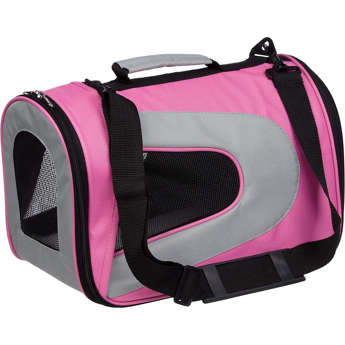 Pet Life Airline Approved Collapsible Zippered Folding Sporty Mesh Travel Fashion Pet Dog Carrier Crate, Large, Pink & Cream