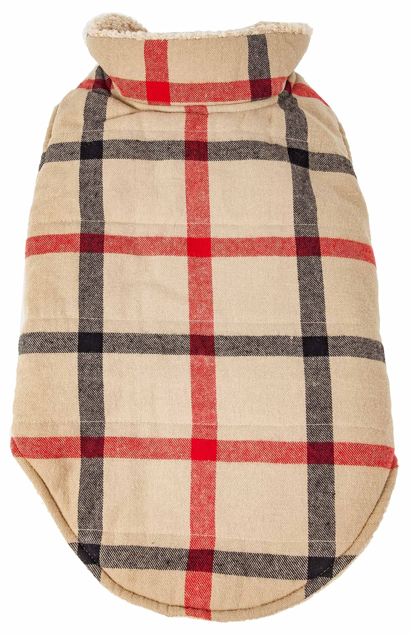 Pet Life 'Allegiance' Plaid Dog Coat - Insulated Plaid Dog Jacket with Reversible Sherpa - Winter Dog Clothes for Small Medium
