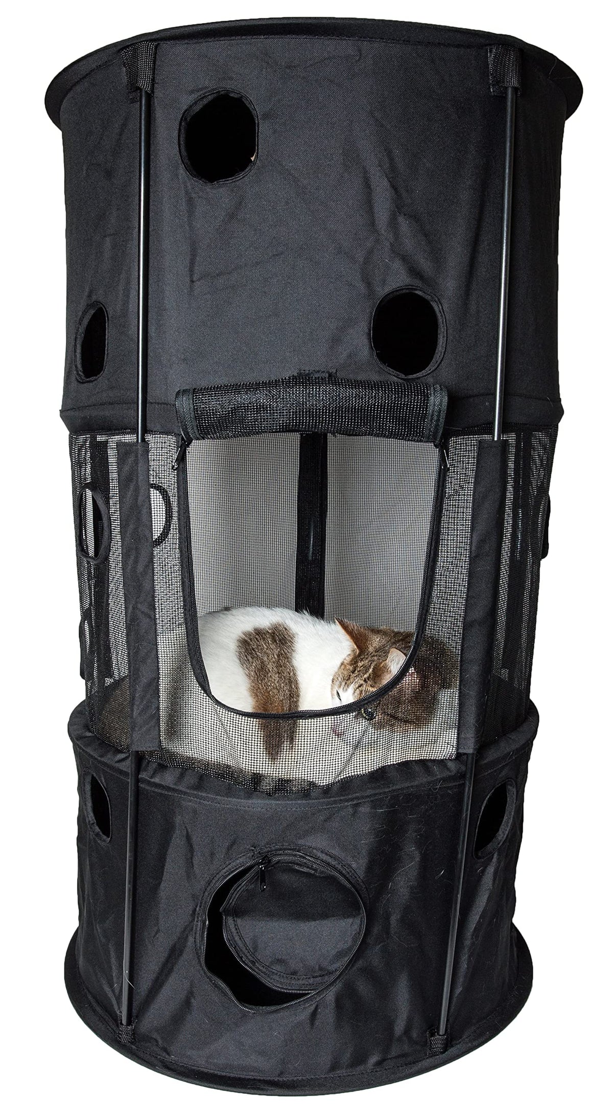 Pet Life 'Climber-Tree' Play-Active Travel Collapsible Lightweight Kitty Cat Tree House Lounger, One Size, Black