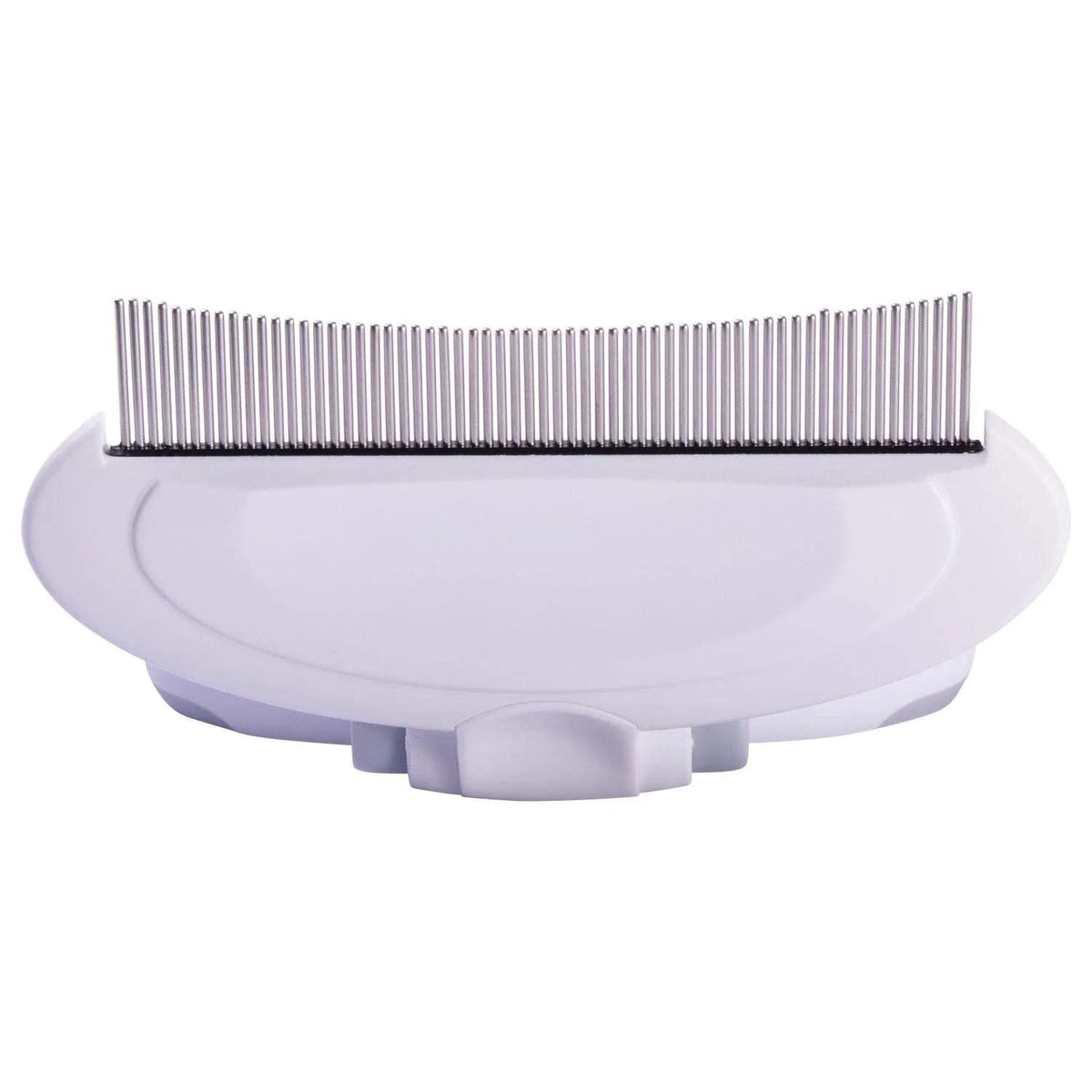 Q: What makes the Pet Life 'Gyrater' Travel Swivel Curved Pet Grooming Pin Comb unique?A: The Pet Life 'Gyrater' Comb features a customizable rotating handle that swivels and locks into place, allowing for a comfortable grip while grooming. Its specially designed stainless steel curved blades effectively capture more hair and tackle stubborn knots, making it ideal for both dogs and cats.