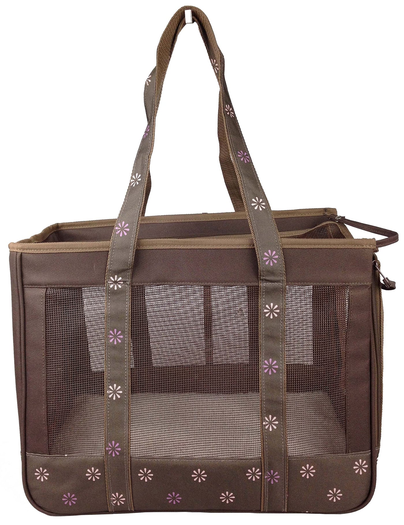 The Surround-View Fashion Pet Carrier or Pet Handbag features a Floral Pattern with Trims and Handles designed to look Fashionable and offer total visibility