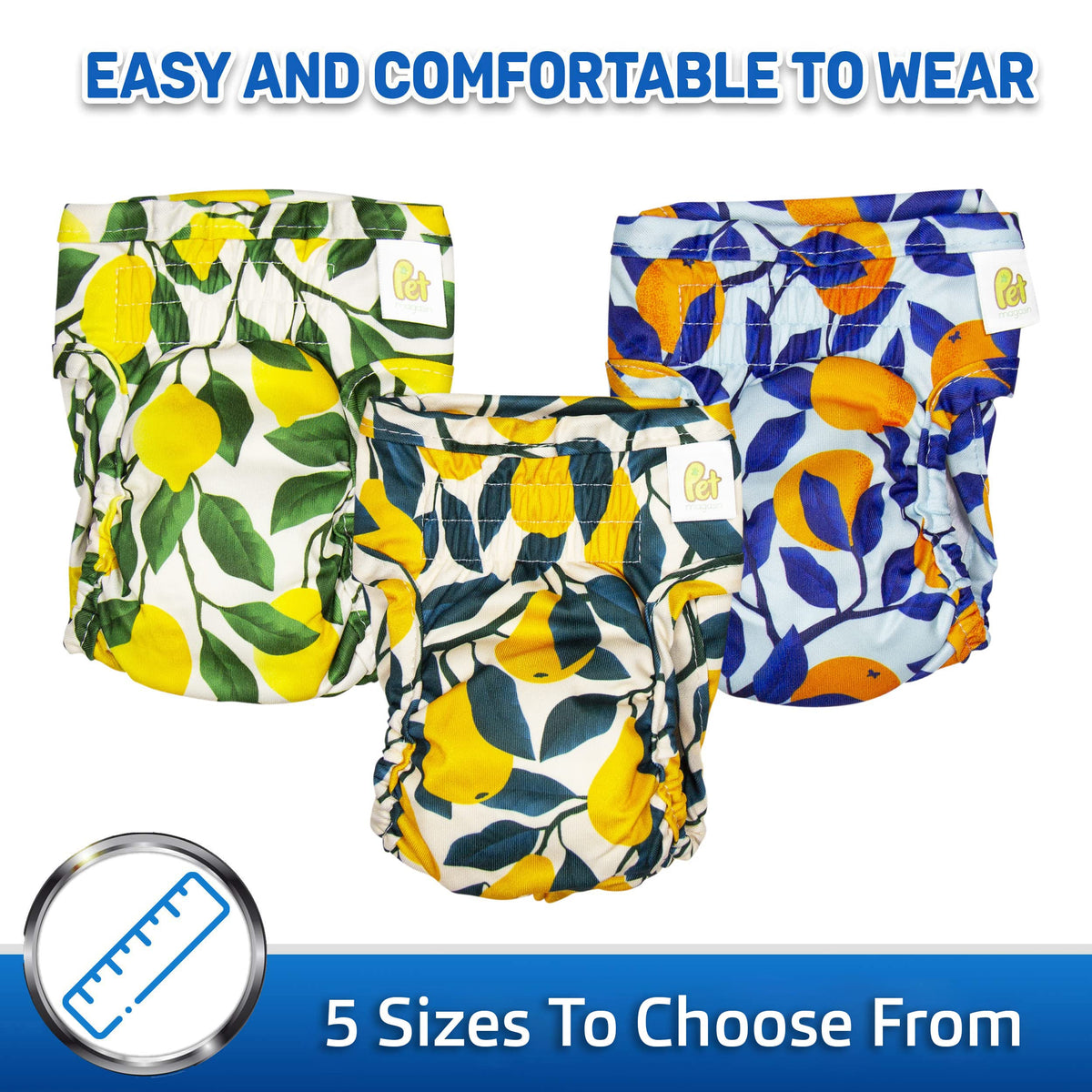 Pet Magasin Reusable Washable Dog Diapers (Pack Of 3), Highly Absorbent With Strong & Flexible Closure (Botanical Fruit, Xs (10