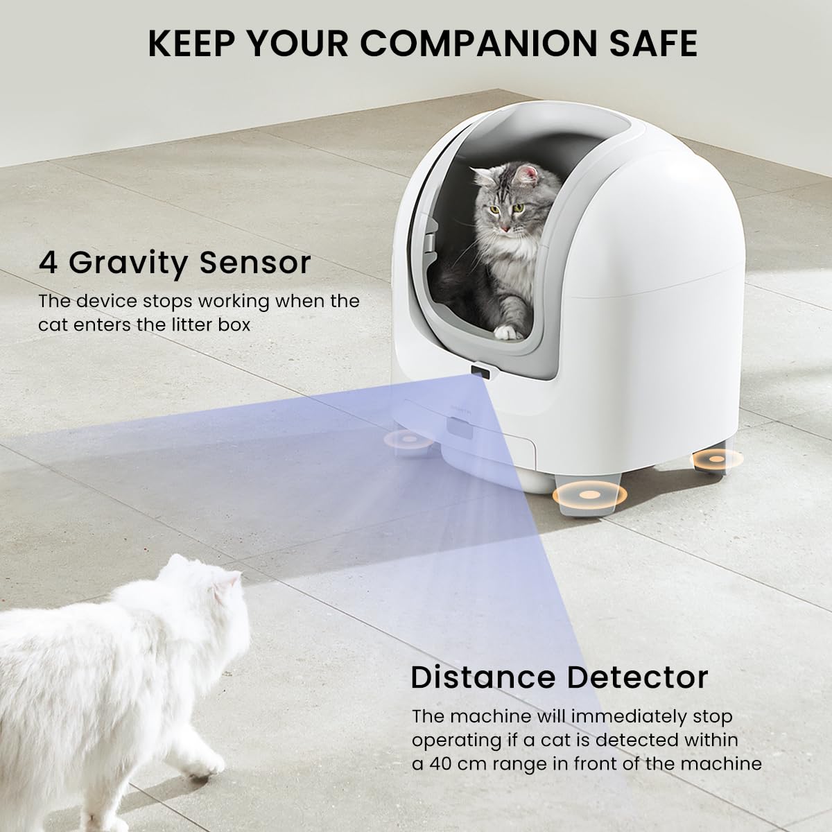 This Smart Litter Box Is Designed With Cats In Mind, Featuring An Open Design And A Spacious 70L Interior That Offers A Comfortable Space. It Is Suitable For Large Cats Or Multi-Cat Households.