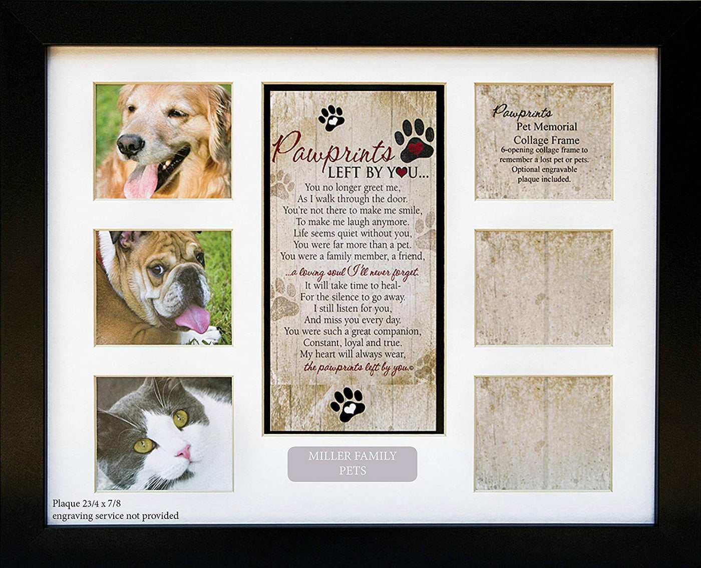 Pet Memorial Collage Frame For Dog Or Cat With Sympathy Pawprints Left By You Poem - Made In The Usa