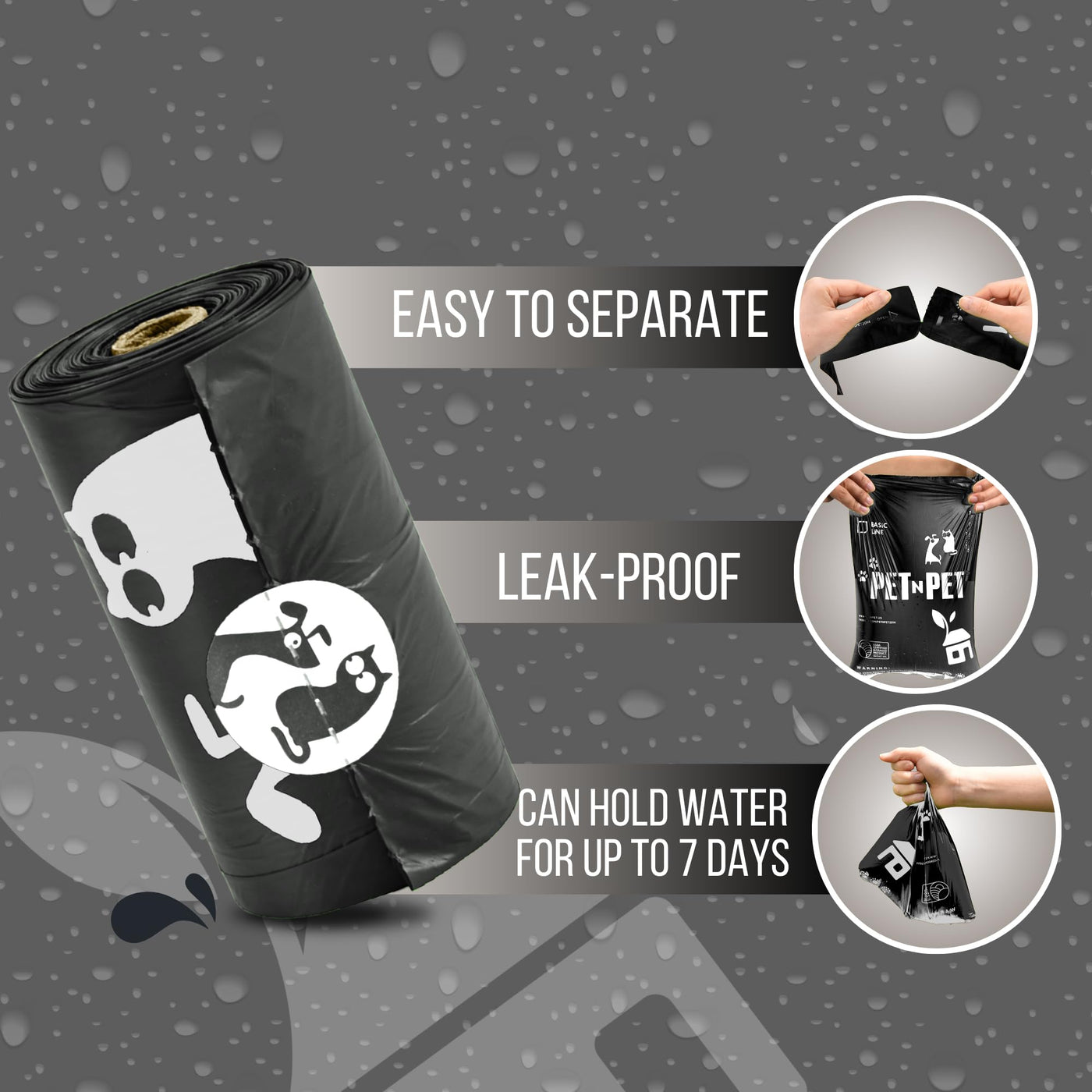 Pet N Pet 1080 Counts Black Poop Bags for Dogs, 38% Plant Based & 62% PE Extra Thick Dog Poop Bags Rolls, 9 x 13 Unscented Dog B