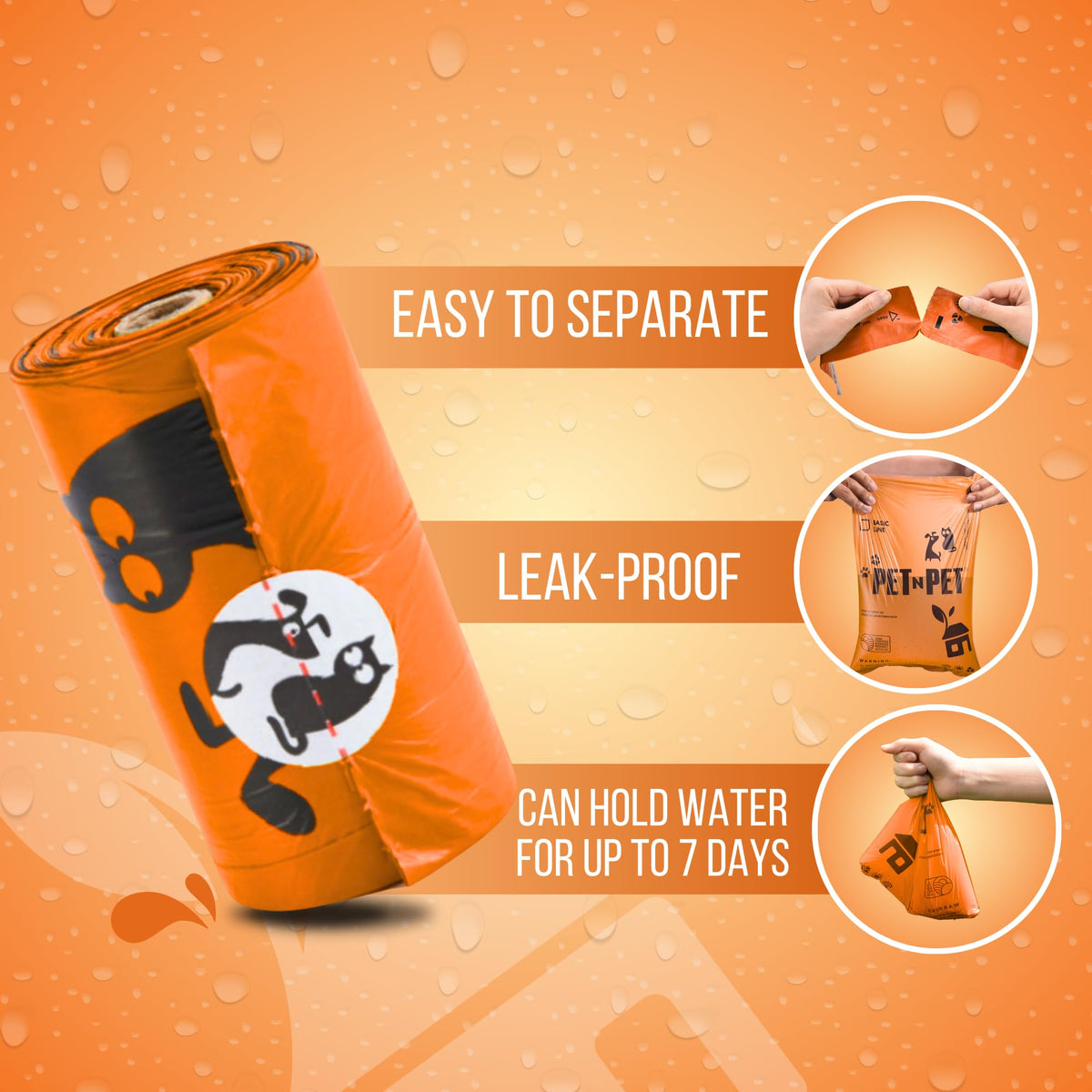 Pet N Pet 1080 Counts Orange Poop Bags For Dogs, 38% Plant Based & 62% Pe Extra Thick Dog Poop Bags Rolls, 9'' X 13'', Unscented