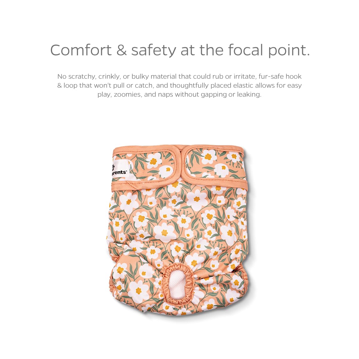 At Pet Parents, We Rethink Everyday Pet Parenting To Make Life Better For Them And Simpler For You, So You Can Provide The Care & Connection They Deserve. Because They Are Family. Wickquick Skin Protection No Diaper Rash, Urine Burn, Or Irritation. Wickquck Pulls Liquid Away From The Skin And Into The Absorbent Pad, Keeping Your Pup Dry & Clean. Increased Absorbency Coverage From Teacup Chihuahua To Massive Mastiff. Bigger Dogs = More Liquid. As Our Diaper Size Increases, So Does The Amount Of Absorbent Layers. Comfort & Safety No Scratchy, Crinkly Material To Rub Or Irritate. Fur-Safe Hook & Loop Won'T Pull Or Catch, And Carefully Placed Elastic Is Flexible For Play Or Naps. Leakproof Thoughtfully Designed For No Leaks. A Waterproof Outer Shell Paired With Precise Elastic Creates A Barrier So Liquids Don'T Escape. Sustainably Super Won'T Go To The Landfill After 1 Use. Benefiting The Planet And Your Wallet By Eliminating Repeat Purchases Of Disposable Diapers. Female Dog Diapers & Male Dog Diapers Our Dog Diapers Female Are Perfect As Female Dog Diapers And Dog Diapers Male Are Great As Male Dog Diapers And Are Quick And Easy To Put On, And The Various Colors & Styles Will Match You And Your Pup'S Unique Personality.