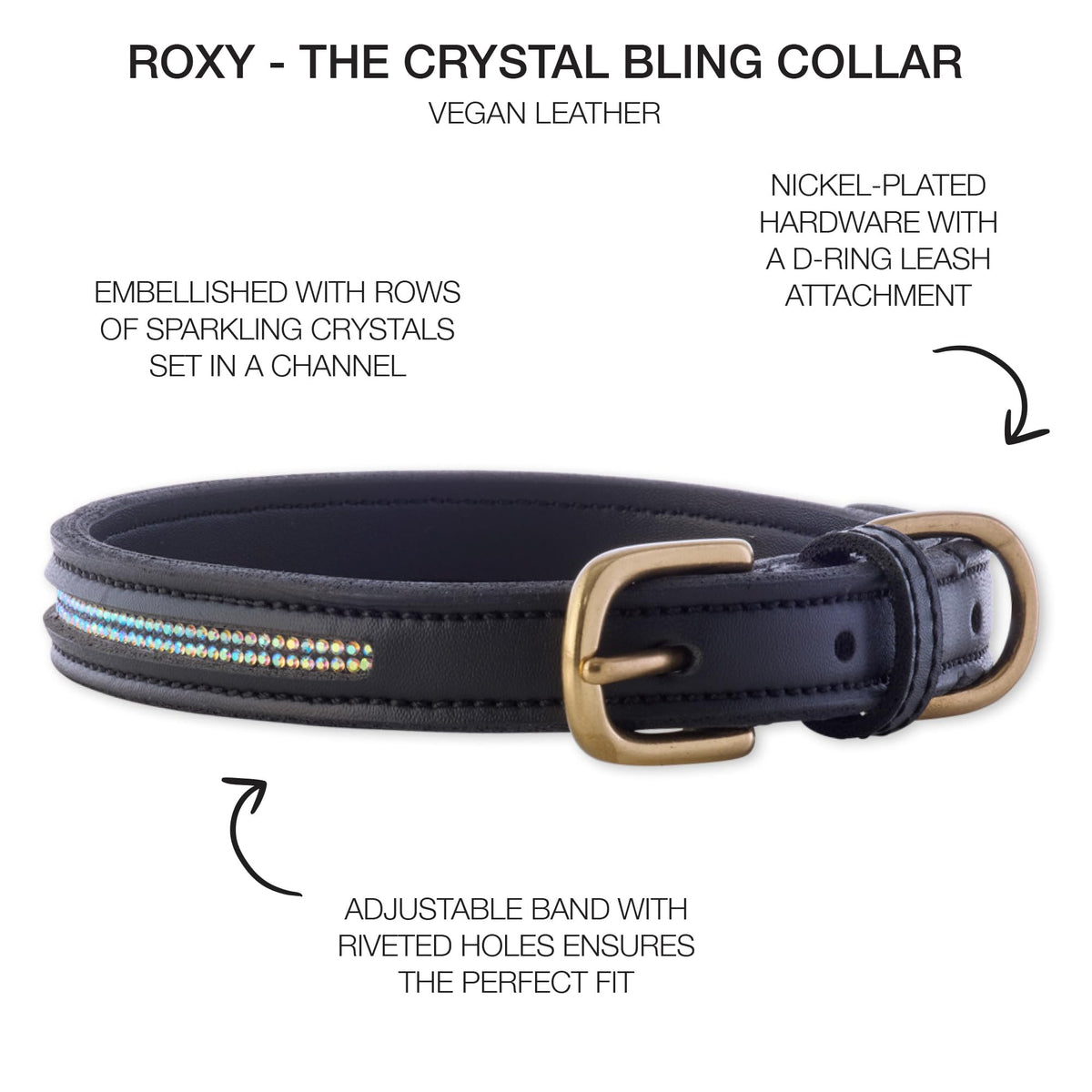 'Primary Collars'' Adjustable Dog Collar With Vegan Leather And Crystal Bling-A Stylish And Eco-Friendly Accessory For Pets Of All Sizes! Crafted From Pet-Friendly And Earth-Friendly Vegan Leather, This Collar Adds A Touch Of Glamour To Your Furry Friend'S Ensemble. Embellished With Two Rows Of Silvery Crystals Set In A Channel, It'S Sure To Turn Heads On Every Walk. Meticulously Edge-Stitched With Self-Colored Black Stitching And Fully Lined, It'S As Durable As It Is Chic. With Five Buckle Holes, It Offers Up To 4'' Of Adjustability For The Perfect Fit. Plus, The Nickel-Plated Hardware, Including The D Ring Leash Attachment, Shines In A Silver Finish, Adding To Its Allure. Treat Your Pet To The Ultimate Blend Of Style And Sustainability-It'S A Dazzling Choice For Every Fashion-Forward Furry Friend!