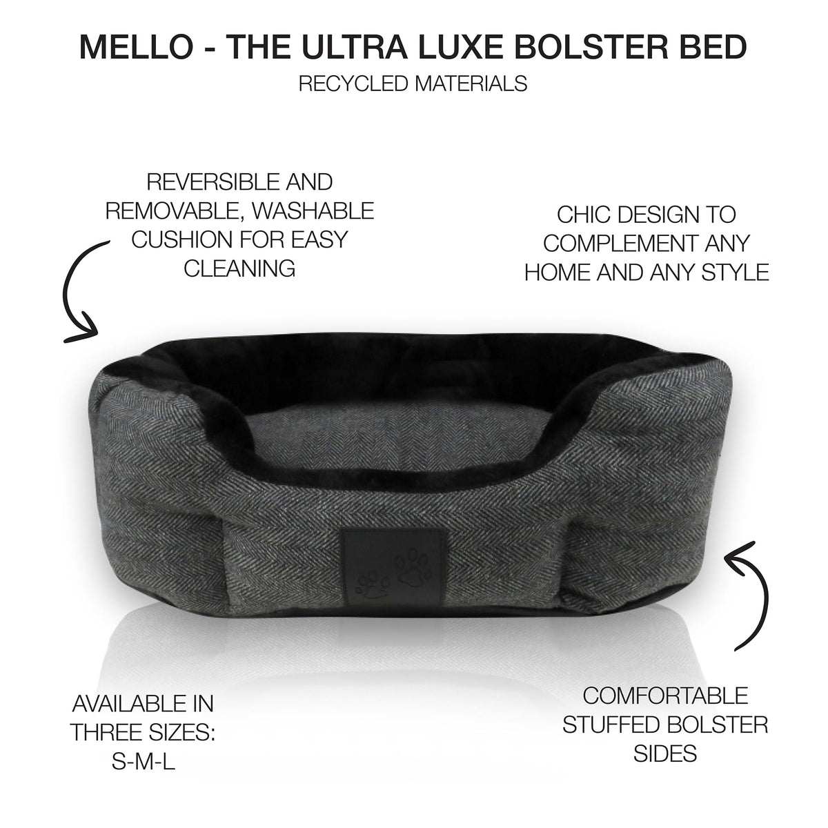Pet Passion Mello- The Ultra Luxe Bolster Dog Bed With Removable Washable Pillow For All Pet Breeds, Charcoal Tweed, Medium