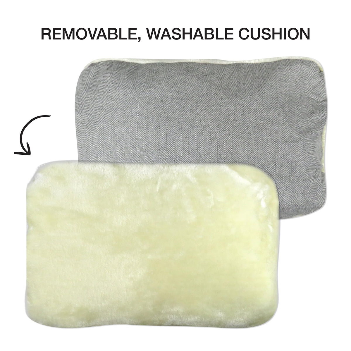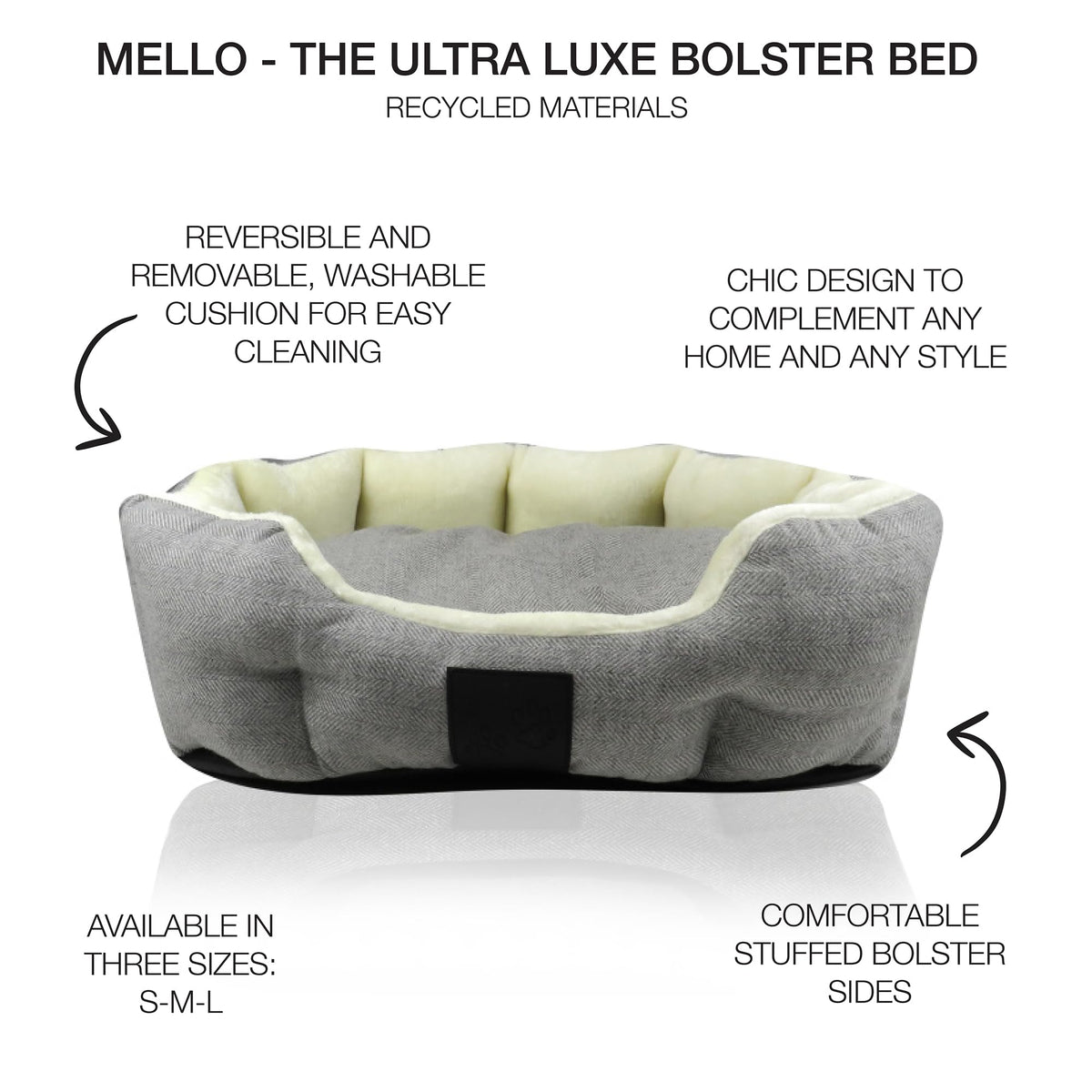 Let Sleeping Dogs Lie Mello - The Ultra Luxe Dog Bolster Bed With Pillow. Our Cozy Retreat Pet Bed Is Perfect For Pets Of All Sizes. Crafted From Recycled Poly Tweed Fabric, This Dog Bed Offers The Ideal Spot To Snuggle Up For Lazy Afternoon Naps. Its Oval Shape And Stuffed Bolster Sides Provide A Comfortable Place For Your Cat Or Dog To Rest Their Chin And Feel Secure. The Soft Tweed Exterior Also Adds A Subtle Touch Of Elegance To Any Home Decor. Best Of All, The Vegan-Fur Cushion Is Removable And Washable, Ensuring The Bed Stays Clean And Fur-Free For Your Little One. Available In Three Sizes To Suit Small, Medium, Or Large Dogs And Cats, Our Tweed Dog Bed With Pillow Will Quickly Become Your Pets Favorite Spot To Snooze And Dream Of Chasing Small Woodland Creatures.