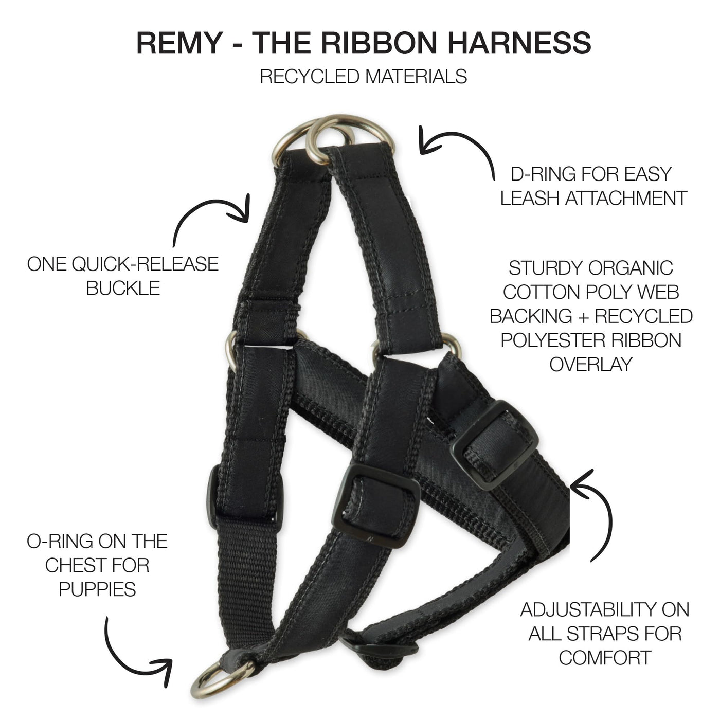 Pet Passion Remy - The Recycled Ribbon Harness, Black, X-Large