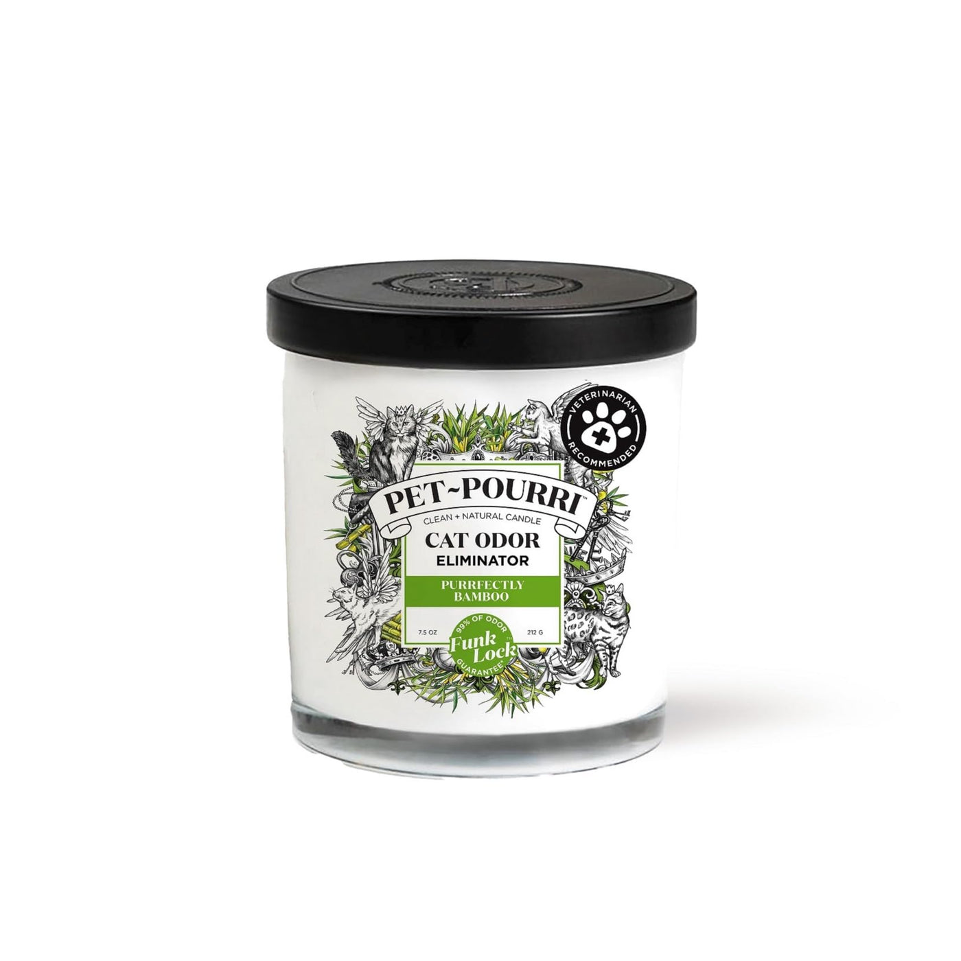 Pet-Pourri Purrfectly Bamboo Cat Deodorizer Candle - Cat Safe Plant Based Ingredients & Wax - Vet Approved - Aromatherapy & Air