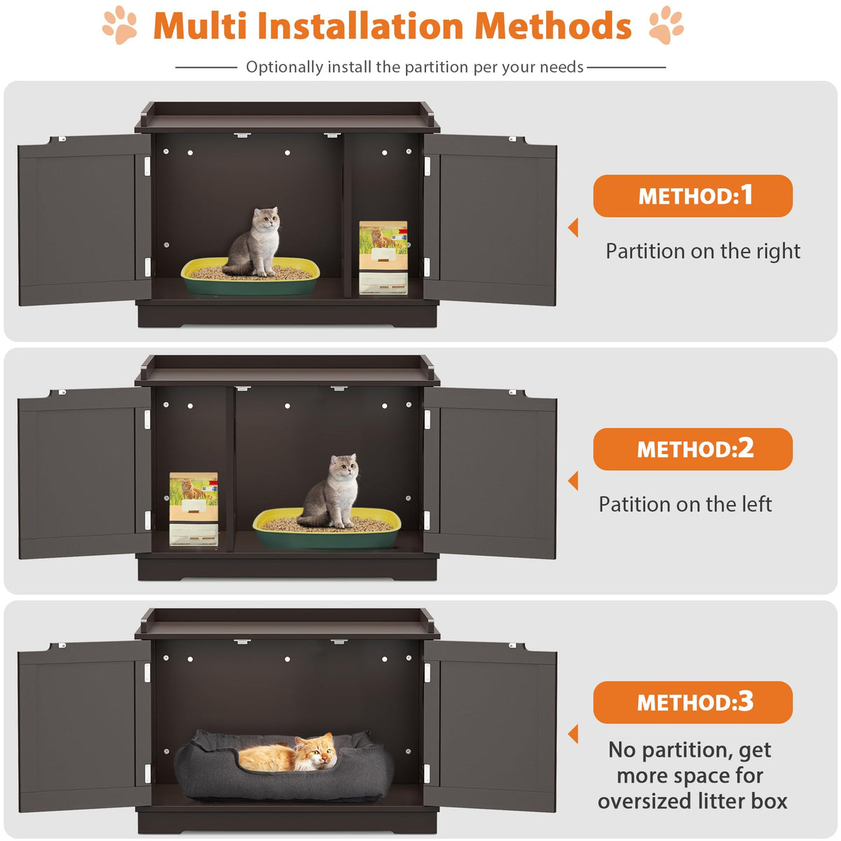 Features: Premium Mdf With Maximum Load Capacity Of 120 Lbs. Used As Nightstand/Side Table/End Table/Storage Beach Or The Cat Litter Box Cover. Wide Top Provides Space For Household Items. Wide Counter Top Offers Storage Space. Pre-Cut Ventilation Holes For Air Circulation. Lightweight And Easy To Move. Easy To Assemble And Clean. Adjustable Divider Can Separate The Cabinet Into Two Parts. Specification: Color: White Material: Mdf + Iron External Dimensions: 29.8''W X 20''D X 20.5''H Cat Hole Dimension Of 9.05''W X 10.23''H Interior Dimensions: 18.9''Wx 18.3''D X 16.5''H?7.9''Wx 18.3''D X 16.5''H Weight: 36 Lbs Weight Capacity: 120 Lbs Package Includes: 1 X Cat Litter House 1 X Divider 1 X Screws Bag 1 X Instruction Manual
