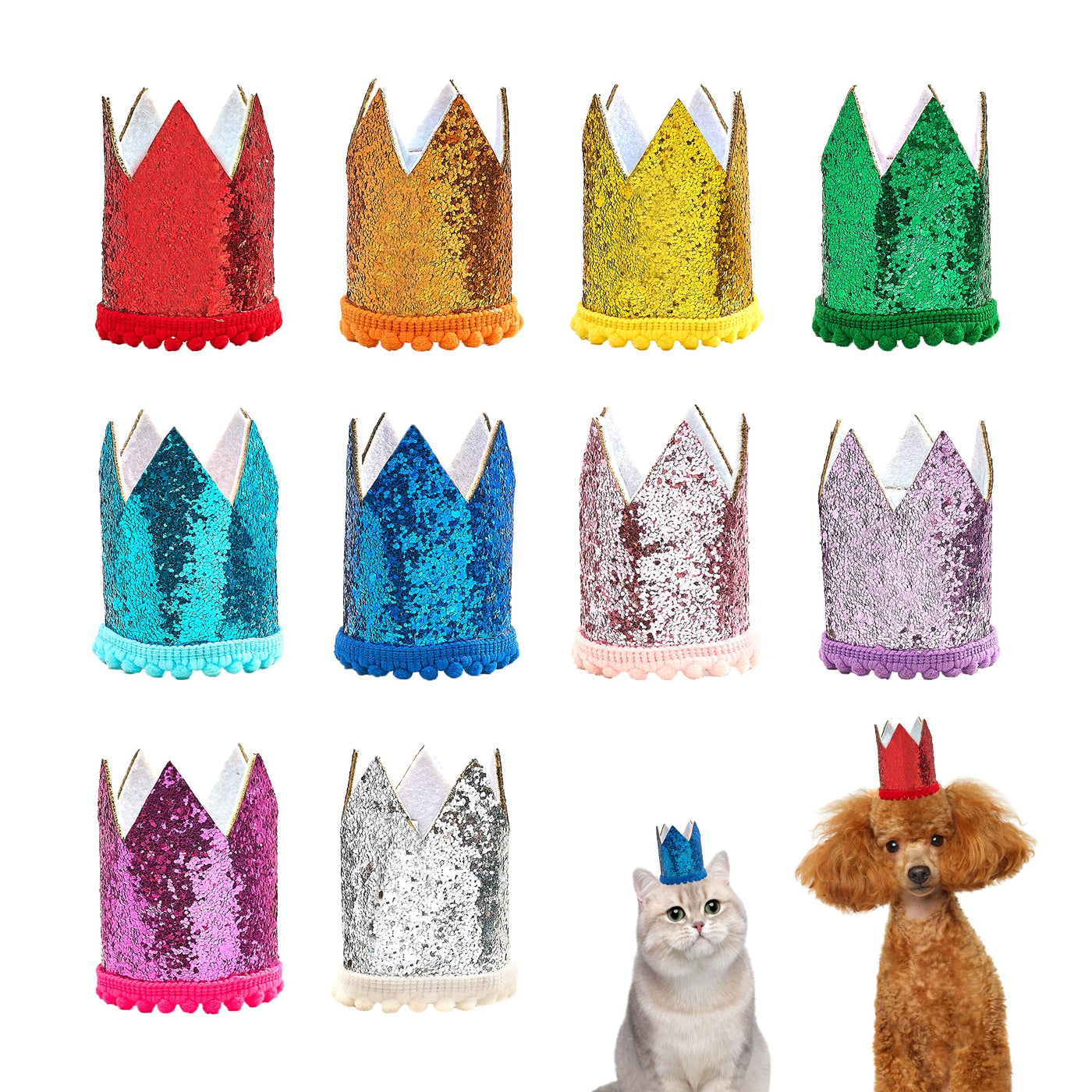 Pet Show 10 Pack Mini Small Dog Crown Hat Dog Birthday Party Hats Adjustable Headband Hats Cat Rabbit Hats For Holiday Wedding P