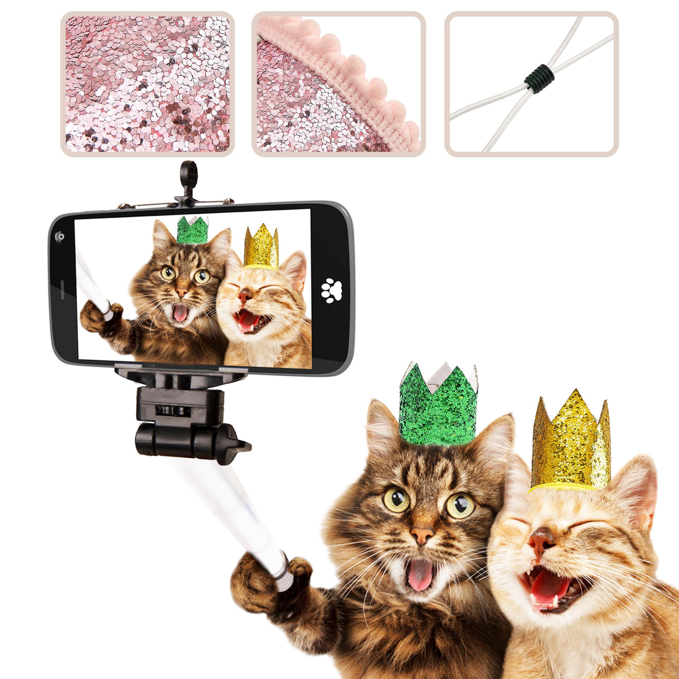 Material: Made Of Quality Leather, The Surface Is Covered With Bling Paillette And At The Bottom Is A Cute Circle Of Plush Balls. Color: 10 Different Colors: Red,Pink,Orange,Yellow,Green,Blue,Royalblue,Rosepink,Purple And Silver. Size: Height 7.5Cm/3Inch, Bottom Diameter 6Cm/2.3Inch, Total Length Of Elastic Rope 42Cm/16.5Inch. Package Includes:10 X Small Mini Doggies Crown Hats Notes: 1. Please Confirm The Size Before Purchasing. This Is A Mini Pet Crown Hat. 2. Manual Measurement, Please Allow Slight Errors On Size. 3. The Color May Exist A Slight Difference Due To Different Screen Displays.