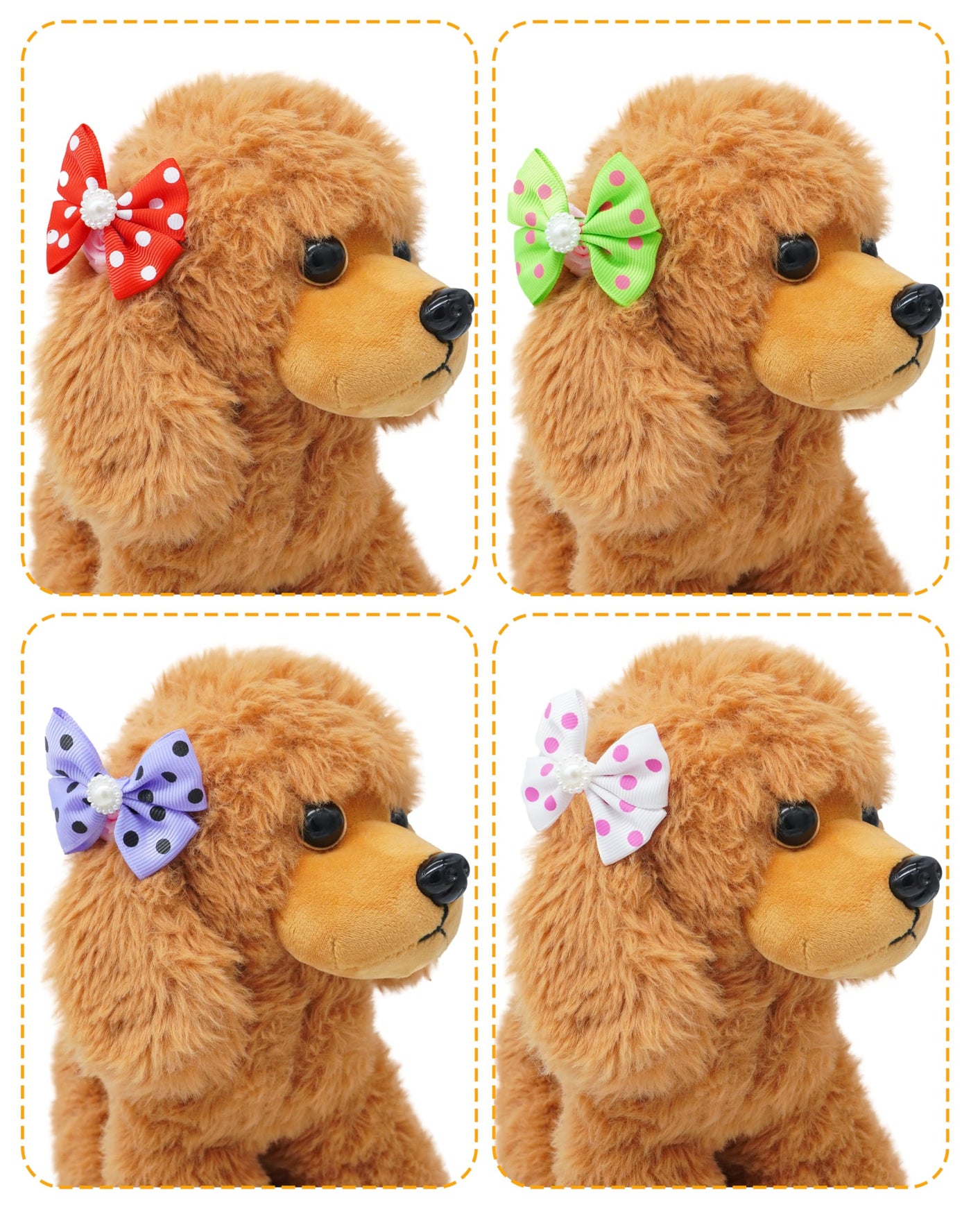 Bow Size Our hair bows size are approx 2inch very beautiful and Sunshine perfect for kids children baby girls even for small medium dogs cats and other small animals if you like aterial The Bows are made of ribbon and attached french clip on the back which can keep hairstyle and prevent it from falling off Set of 10Pcs ackage Includes 10PcS Hair Bows clips Total 10 colors in a package the various kinds of colors which can give you many choices to dress up your dogs colors Random erfect giftOur dog grooming hair bows with many colors are exquisite and suitable for all kinds of festivals and birthday themed parties dressing up your pet dog are perfect gifts for friends and familys puppies lease Note The clips can stay well on the dogs hairs if you use the ties before the clips Or they will be shake off the pets head Thanks a lot