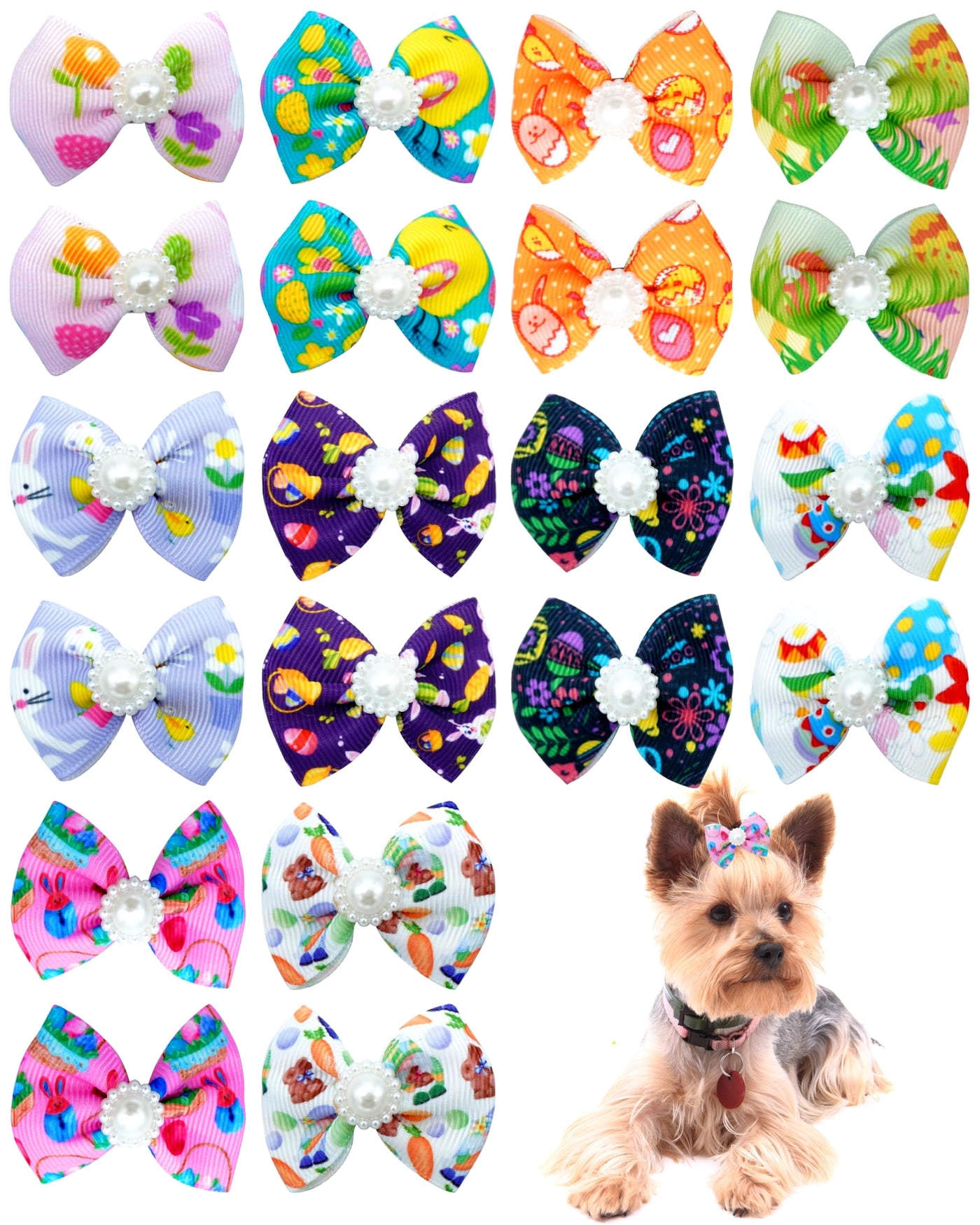 Pet Show 20 Pack Easter Dog Hair Bows With Alligator Clips For Small Medium Dogs Colorful Bowknot Hair Clips Cat Puppy Yorkshire