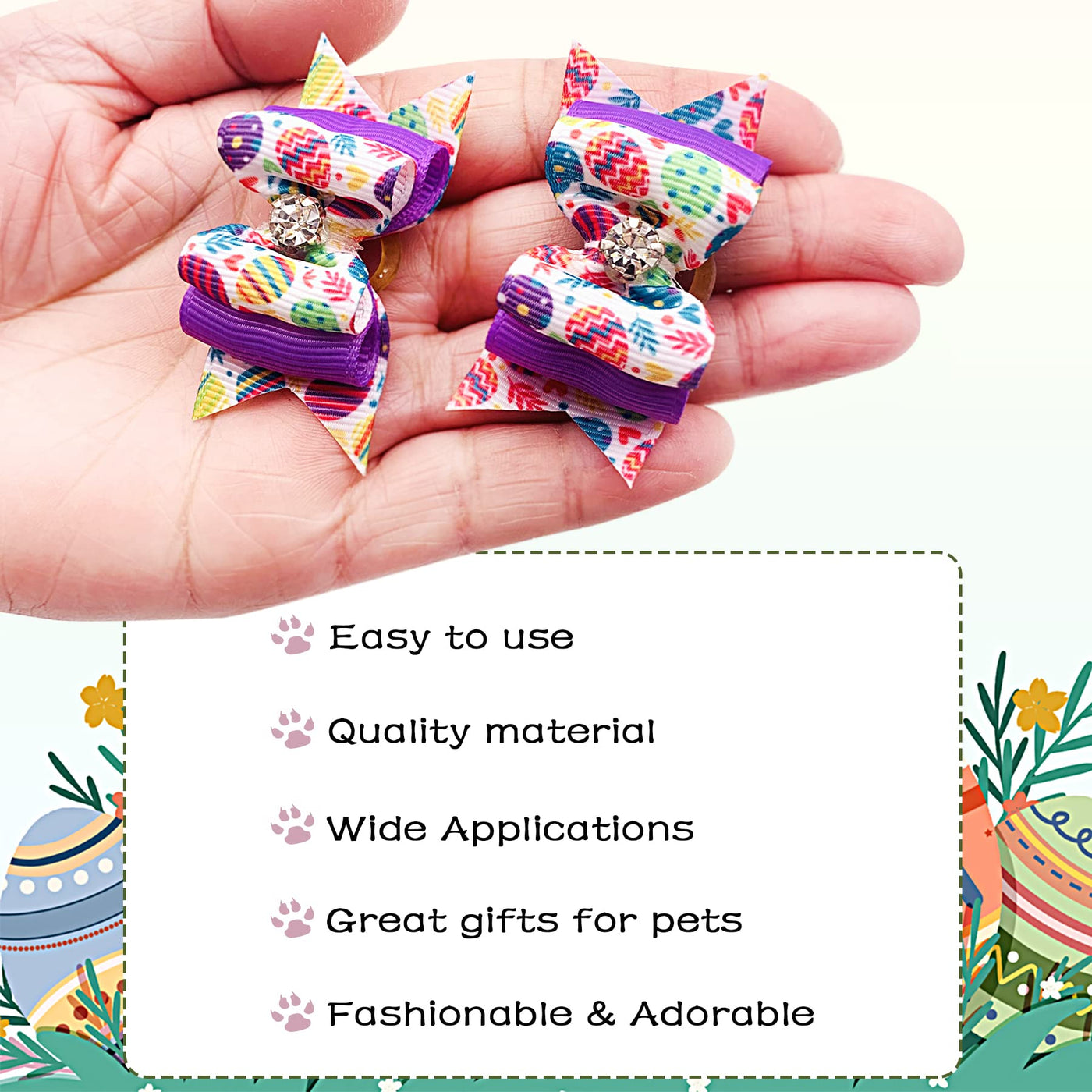 Pet Show 20Pcs Easter Small Dog Hair Bows With Rubber Bands For Medium Dogs Bunny Rabbits Puppies Cats Kittens Rabbits Yorkie To