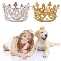 PET SHOW 2pcs Small Dog Crown Headband Puppies Hat for Birthday Party Silver Gold Rhinestone Faux Pearl Crown for Boy Girl Wedding Hair Accessories Photo Prop Costume Medium Large Dogs Pets