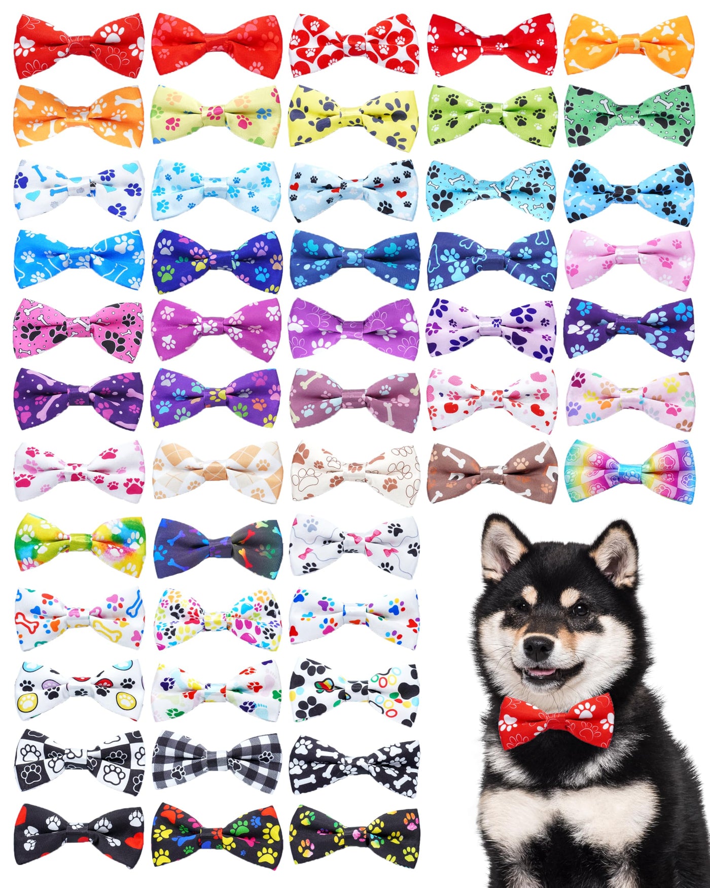 Pet Show 50 Pack Small Dog Bow Ties Collar Paw Print Puppy Adjustable Bowties Neckties For Medium Dogs Cats Bowknots Bulk Pet Gr
