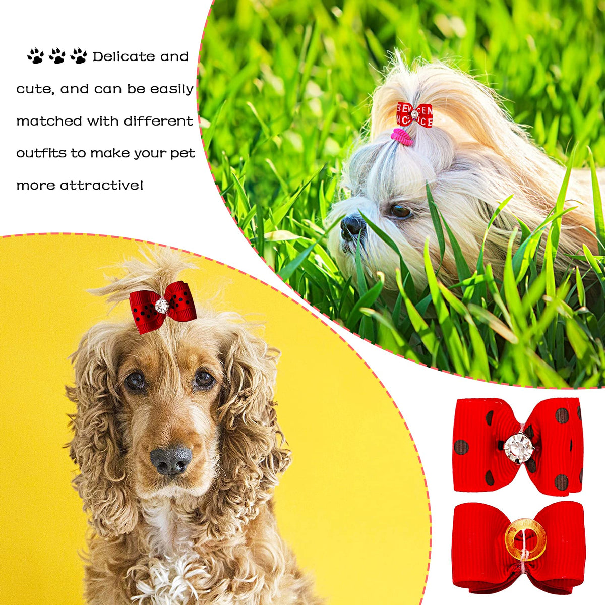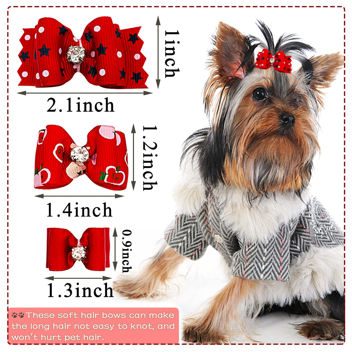 Pet Show Mixed Styles Pet Cat Puppy Topknot Small Dog Hair Bows With Rubber Bands Grooming Accessories Red Pack Of 20