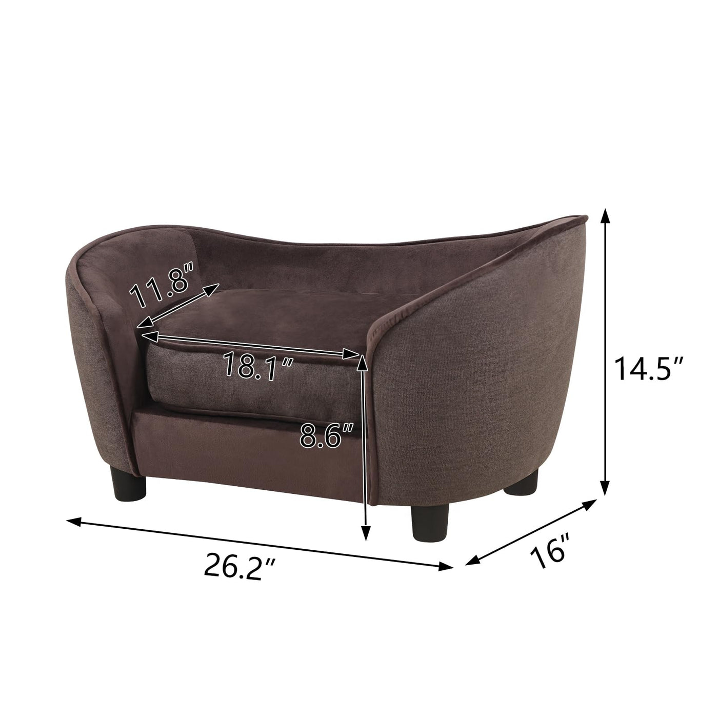 Pet Sofa Size: 26.2*16*14.5 Inchesseat Depth: 18'' * 12'' Seat Height: 8'' Material: Soft Velvet Fabric +Linen Fabric + Sponge + Wood Frame + Plastic Sofa Legs This Brown Pet Sofa Bed Is Not Only A Bed For Them But A Good Toy To Accompany Your Love Pets.