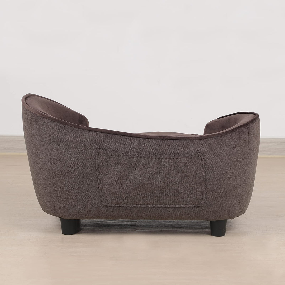 Pet Sofa Bed, Velvet & Linen Fabric Pet Couch Chair With Removeable & Washable Cushion For Small Dogs Cats (Brown)