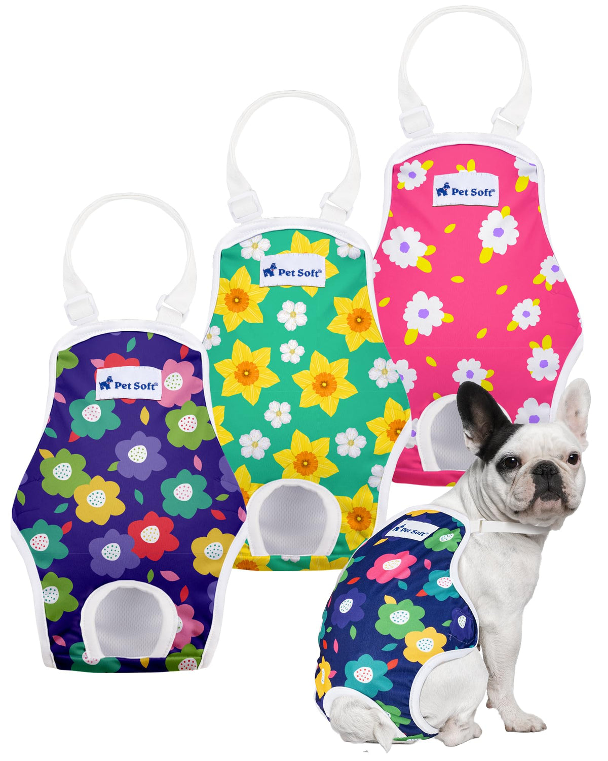 Pet Soft Dog Diapers Female Onesie Sanitary Pantie With Adjustable Suspender, Colorful Pattern Washable Puppy Diapers Female, Su