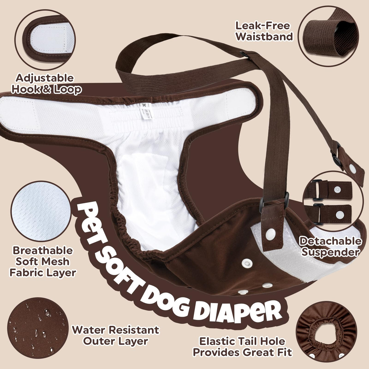 Pet Soft Washable Female Dog Diapers With Adjustable Suspenders (3 Pack) Escape-Proof Super Absorb Reusable Diapers For Heat, Tr