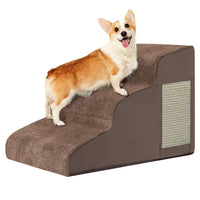 Dog Stairs For Small Dogs, Dog Ramp For Bed, Couch, Sofa, Car And Chairs, Curved Dog Step Non-Slip Bottom Design, With Cat Scratching Board, 3-Steps High Density Foam Portable Pet Step, Indoor, Coffee