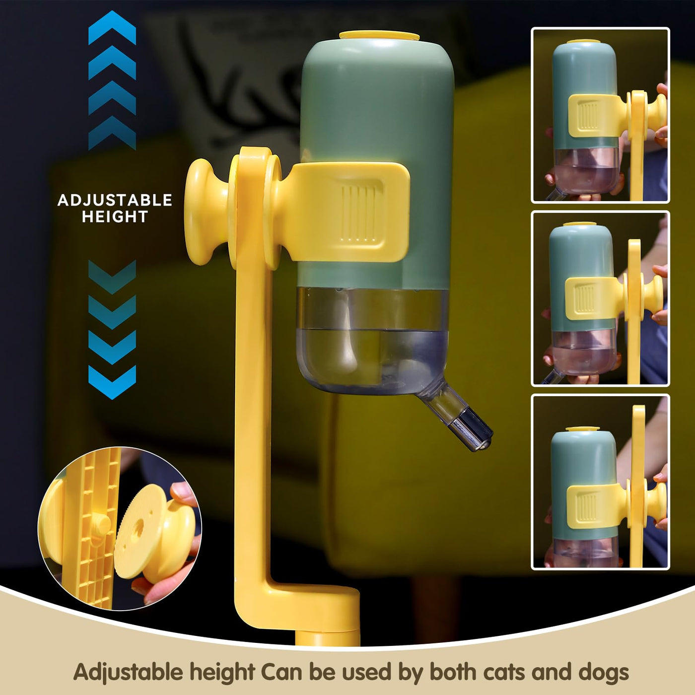1. Detachable Height-Adjustable Lift-Type Drinking Dispenser, Licking And Licking Water, More Convenient And Safe, Firm And Durable. 2. The Height-Adjustable Drinking Dispenser Design Can Meet The Drinking Water Needs Of Pets Of Different Sizes. 3.Feeding And Watering To Meet The Needs Of Pets. 4. Sealing Rubber Ring, Clean And Hygienic, Easy To Clean.