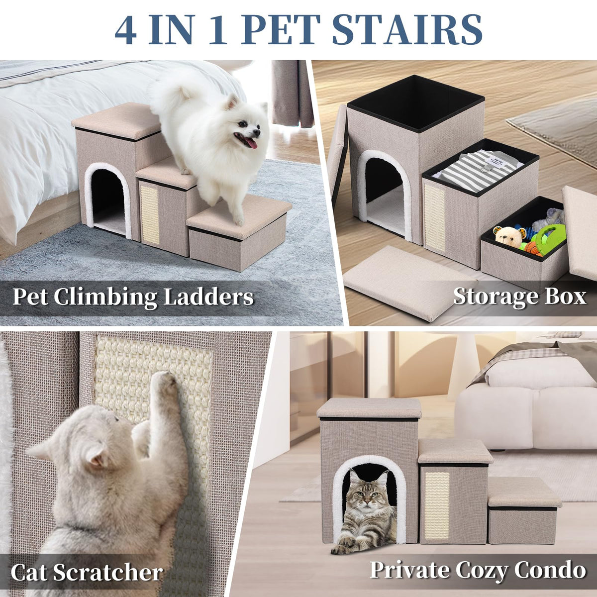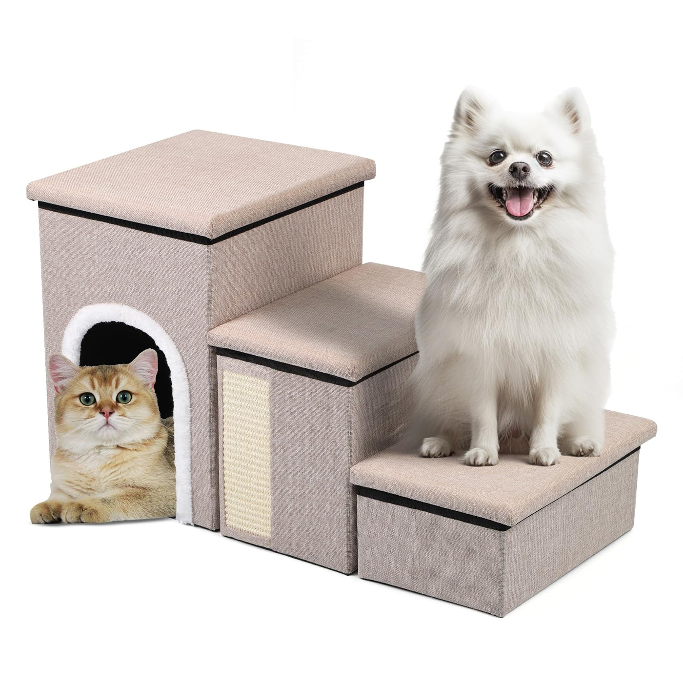 Pet Steps For Bed And Couch, 17''H Foldable Stairs For Small Older Dogs And Cats, Adjustable With Storage, Ramps With Condo, Scr