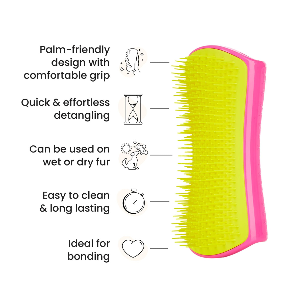 Pet Teezer By Tangle Teezer Detangling Dog Grooming Brush, Dog Bath Brush For Wet Or Dry Fur, Pink & Yellow