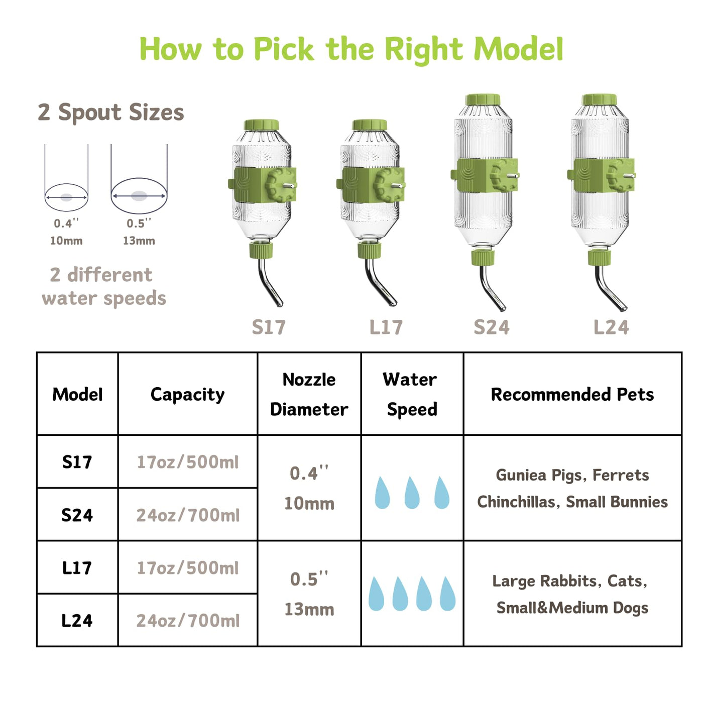 Pet Water Bottle [L17, 17Oz] Hanging Dog Water Dispenser Kennel Plastic Drinker Kettle Feeder Bpa Free Cage Crate Hutch Puppy Ca