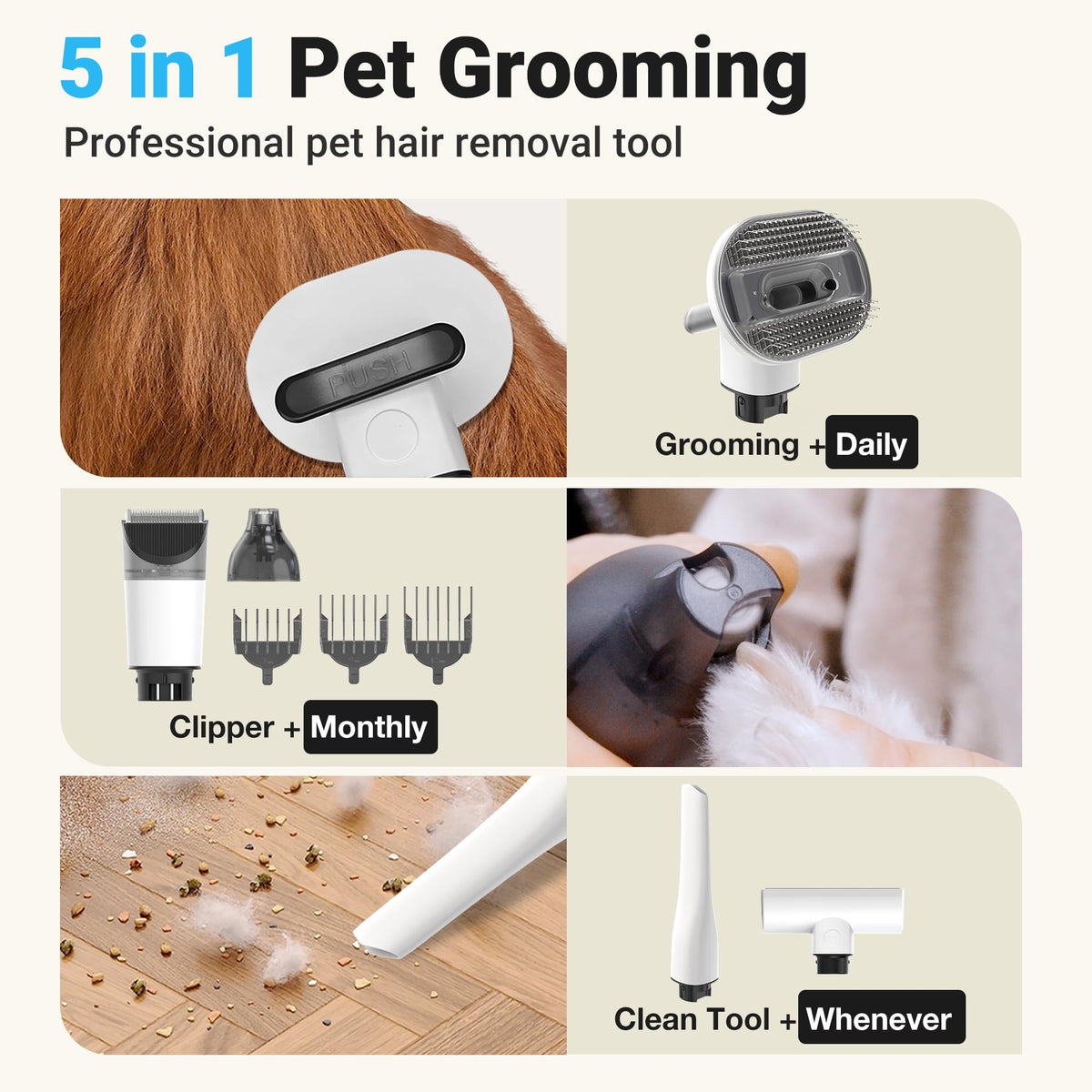 Petaboo Cordless Dog Grooming Vacuum, Pet Grooming Kit With Clippers Nail Grinder 5 Pet Grooming Tools,2.2L Dust Cup,Low Noise,D