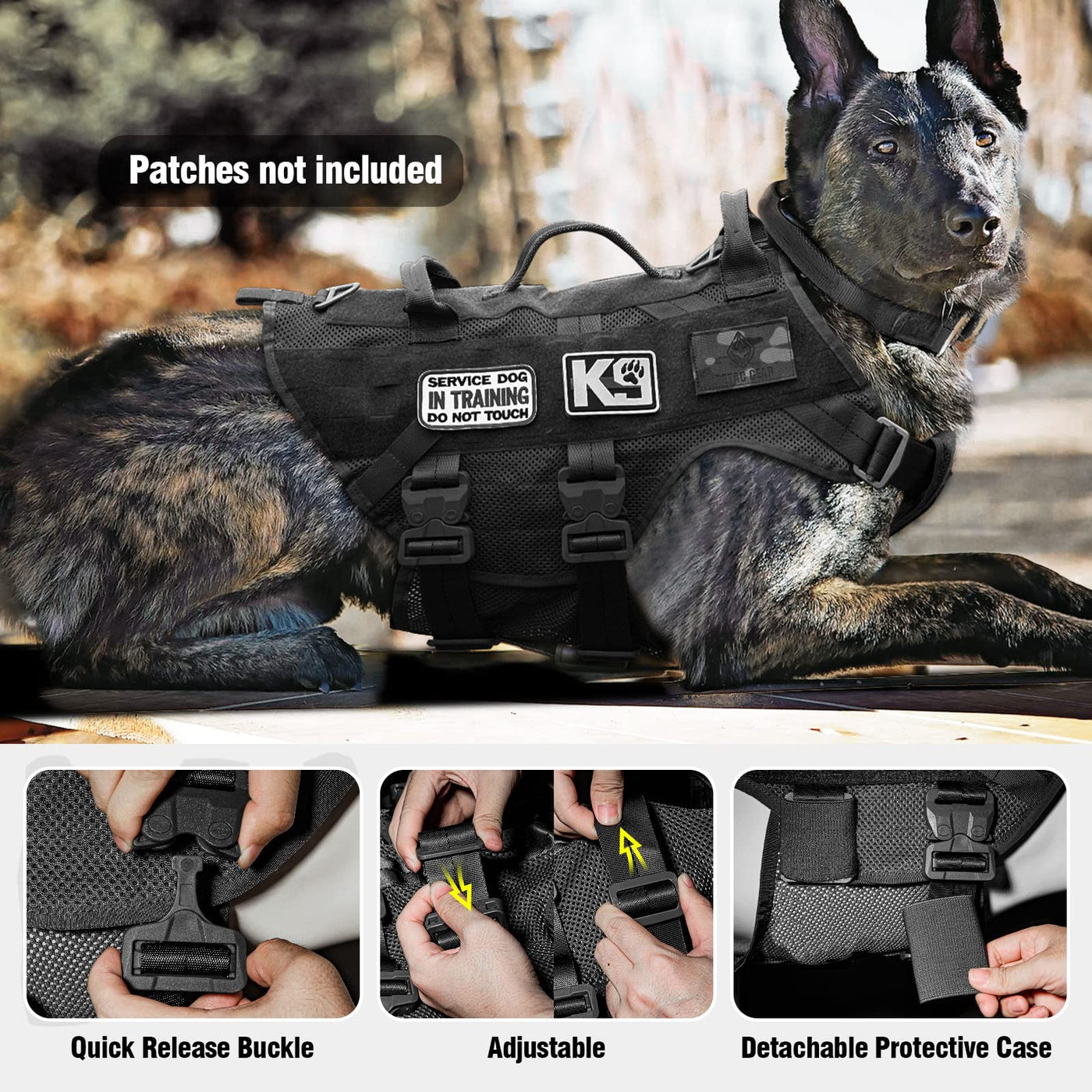 Petac Gear Tactical Dog Harness K9 Working Dog Vest Military Dog Training Harness Police Service Dog Vest Adjustable Lightweight Breathable Air Mesh Dog Harness With Handles V-Ring Leash Clips No Rubbed Buckles Molle Loop Panel